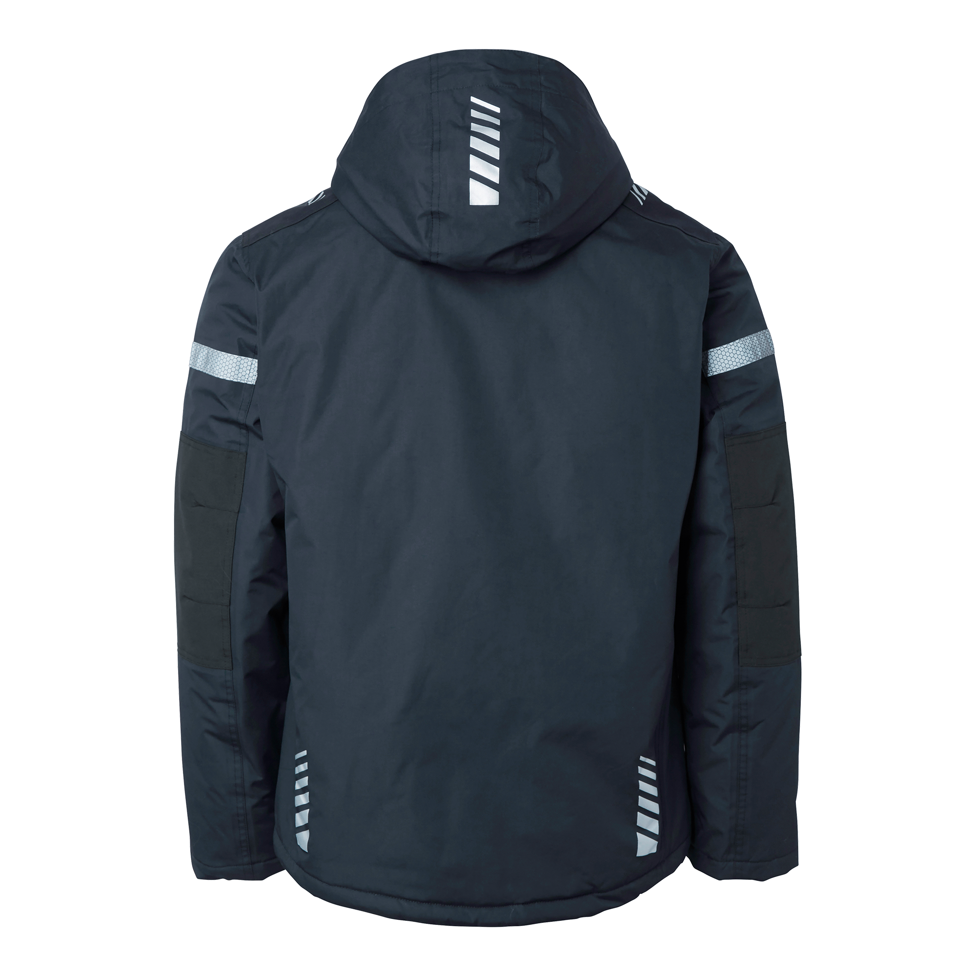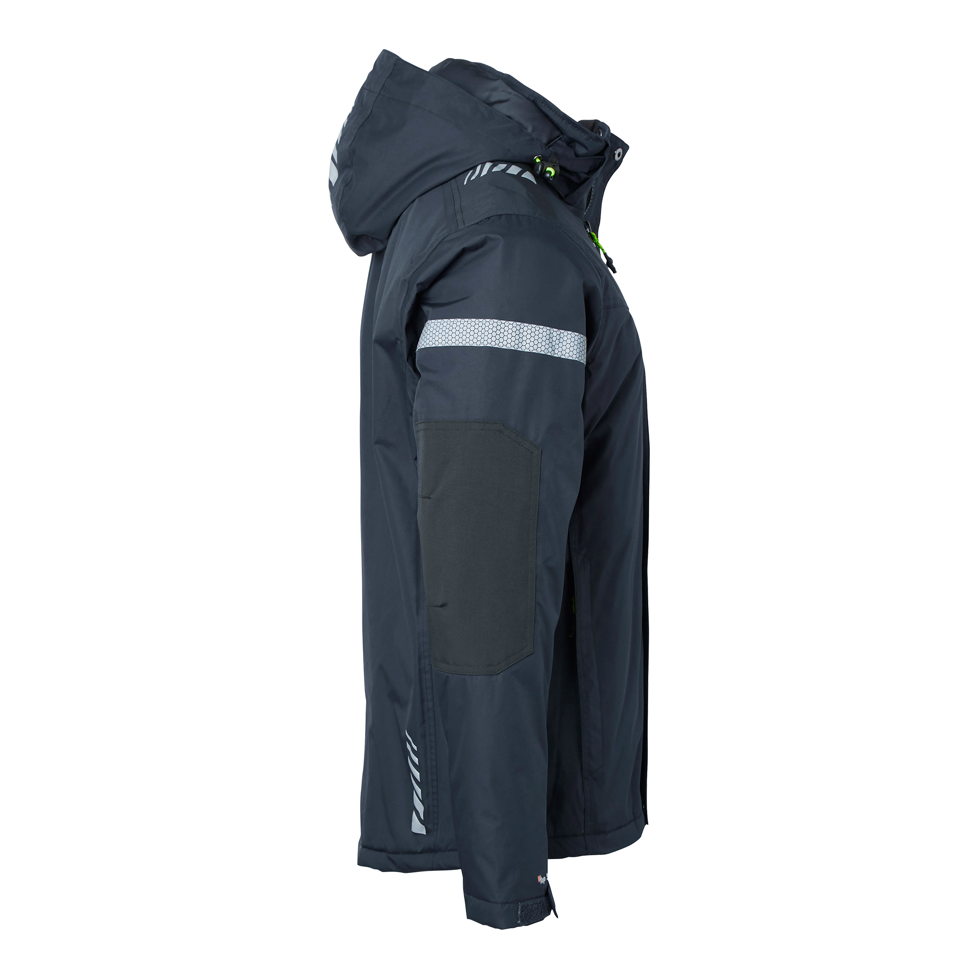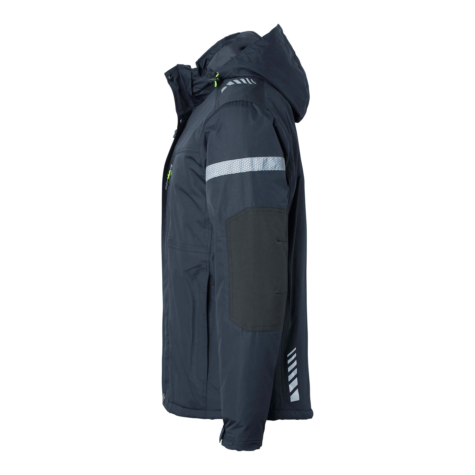 Vind- og vanntett vinterjakke med teipede sømmer, fôret med dyne og materialer som gir varme og ventilasjon. Brystlomme med vanntett glidelås, innerlomme, napoleonlomme og sidelommer med glidelås. Avtakbar hette, refleksdetaljer, justerbare mansjetter og nederkant.