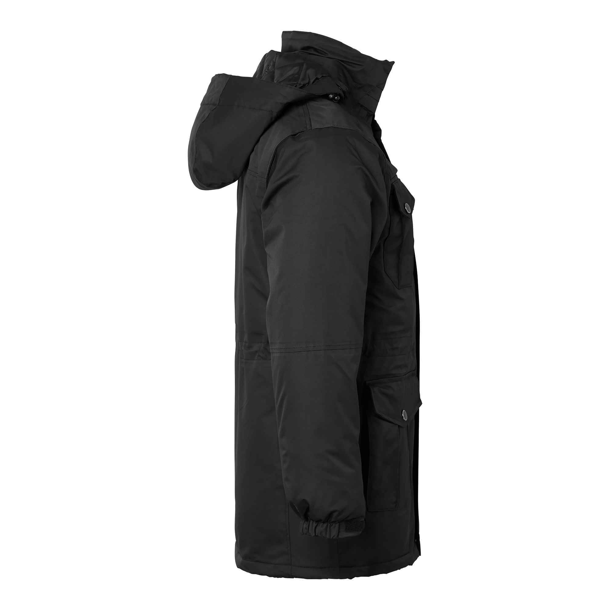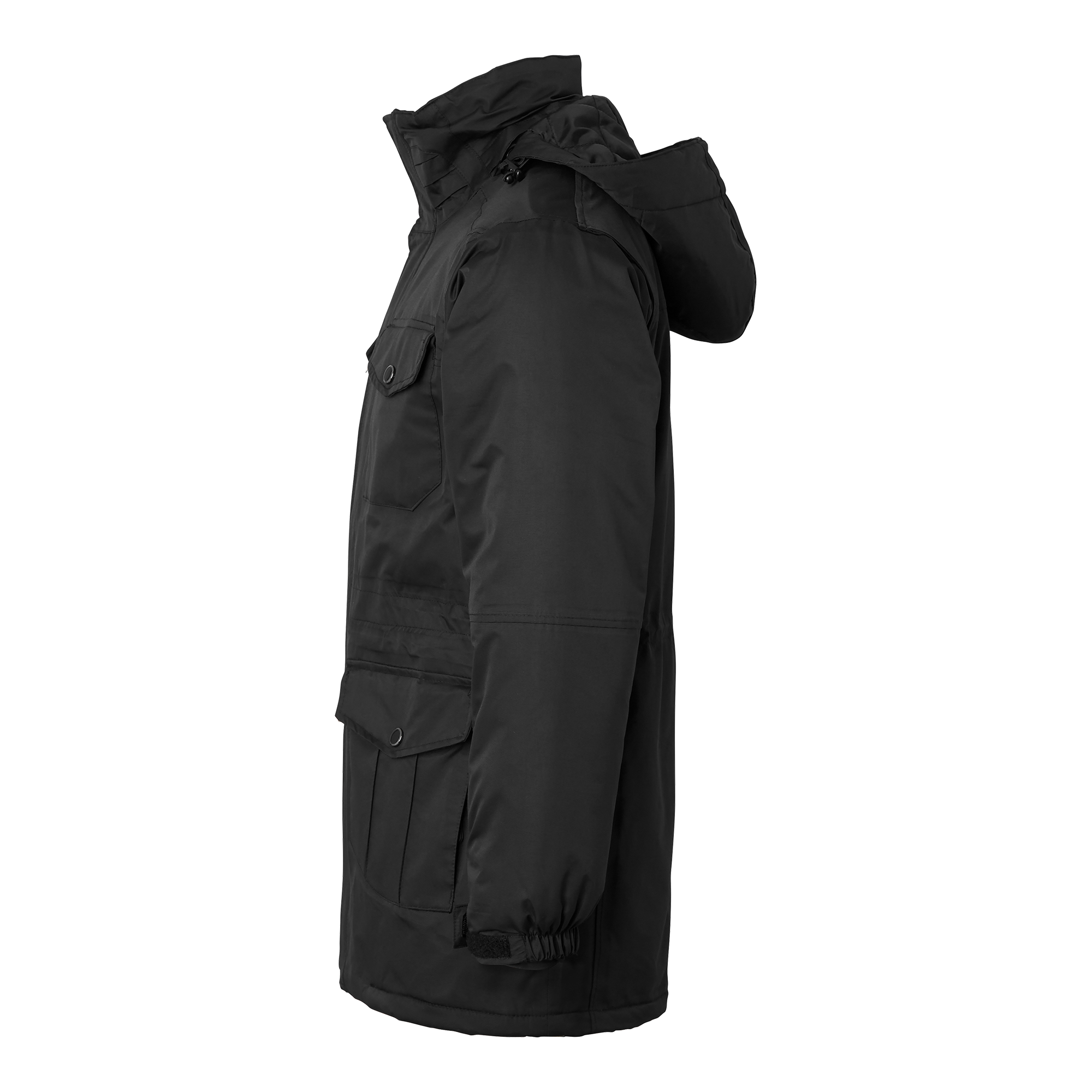 Vind- og vanntett parkas med teipede sømmer og god pusteevne. Fôret med quilt, har flere lommer – der frontlommene er utstyrt med både glidelås og klaffer –, avtakbar hette, justerbare mansjetter og snøring i midje og nederkant. Perfekt for arbeid i kaldt og vått vær.