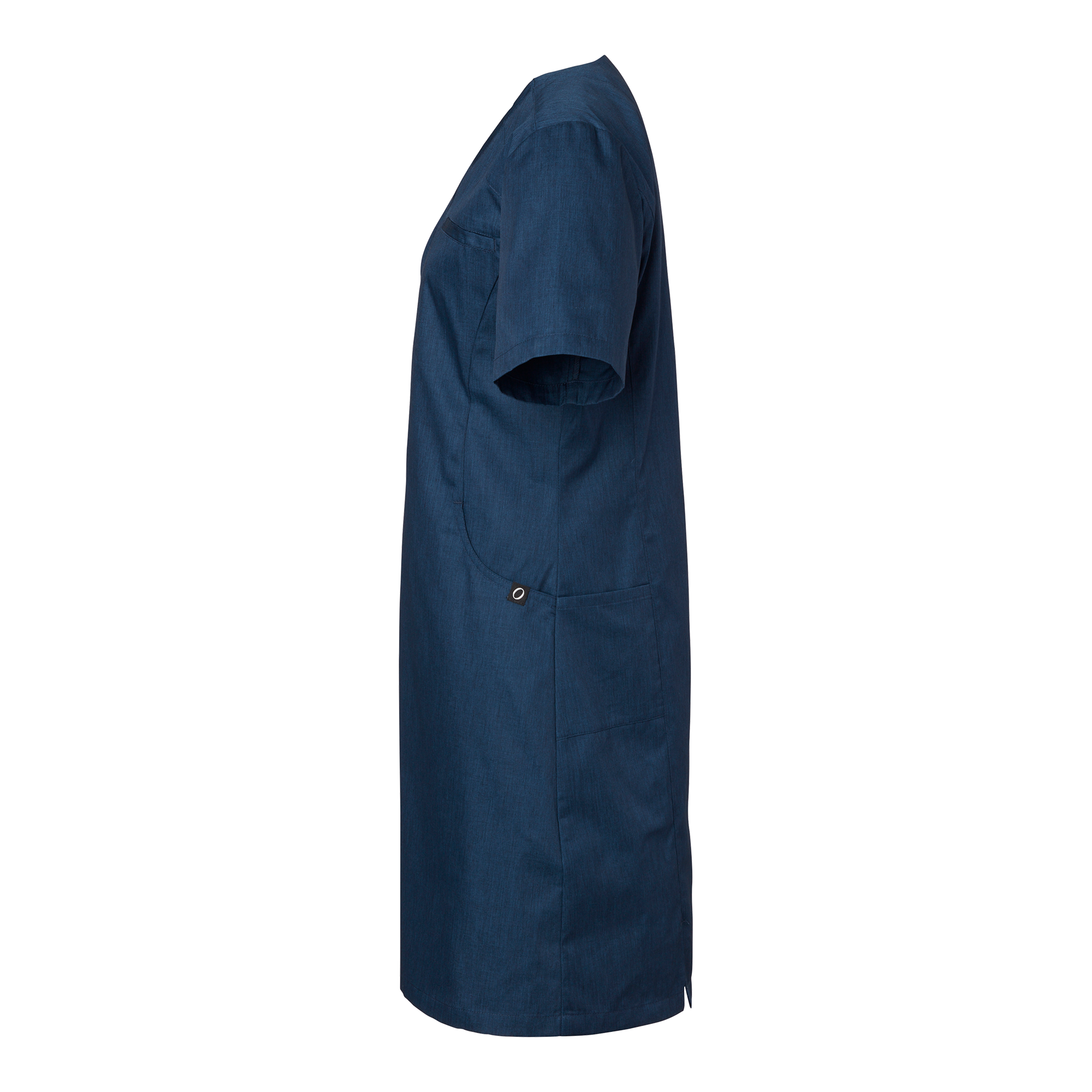 Mira Dress er en moderne og funksjonell kjole designet for deg som jobber innen helse, pleie og omsorg. Den V-formede halsen og de figursydde prinsessesømmene foran og bak gir en feminin silhuett, mens den lett innsvingede midjen gir en behagelig og fleksibel passform gjennom hele arbeidsdagen. Kjolen har flere praktiske detaljer som gjør hverdagen enklere i et aktivt arbeidsmiljø: romslige frontlommer, hvorav én med integrert mobillomme og nøkkelholder, brystlomme og ekstra lommer i sidepanelene. En splitt bak i panelet gir økt bevegelsesfrihet og fleksibilitet i arbeidshverdagen. Mira Dress er en del av South Wests kolleksjon med pleieklær – plagg som kombinerer slitestyrke, komfort og gjennomtenkt design for å møte kravene i din arbeidsdag. Med sitt stilrene uttrykk, funksjonelle detaljer og kvalitetsmaterialer er denne kjolen et perfekt valg for profesjonelle som ønsker å føle seg både velkledde og komfortable.