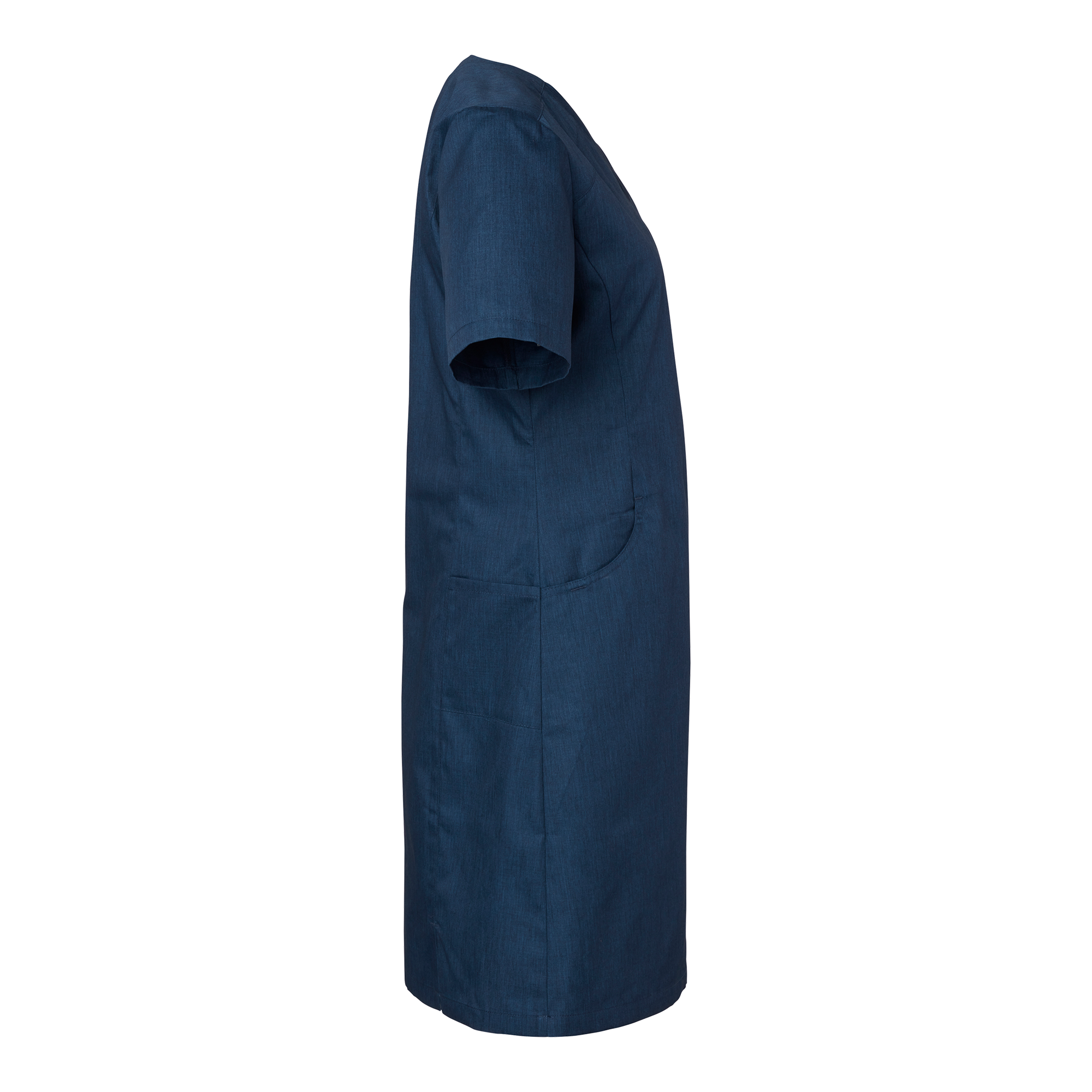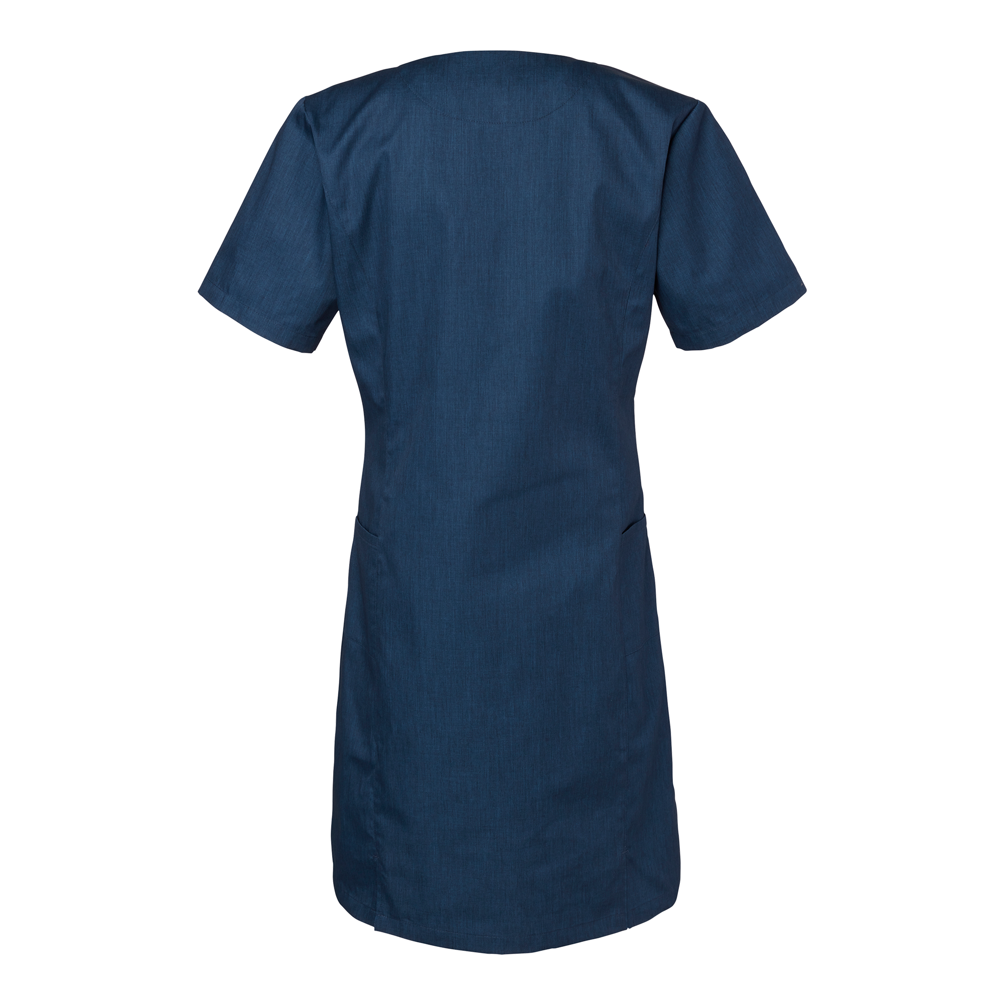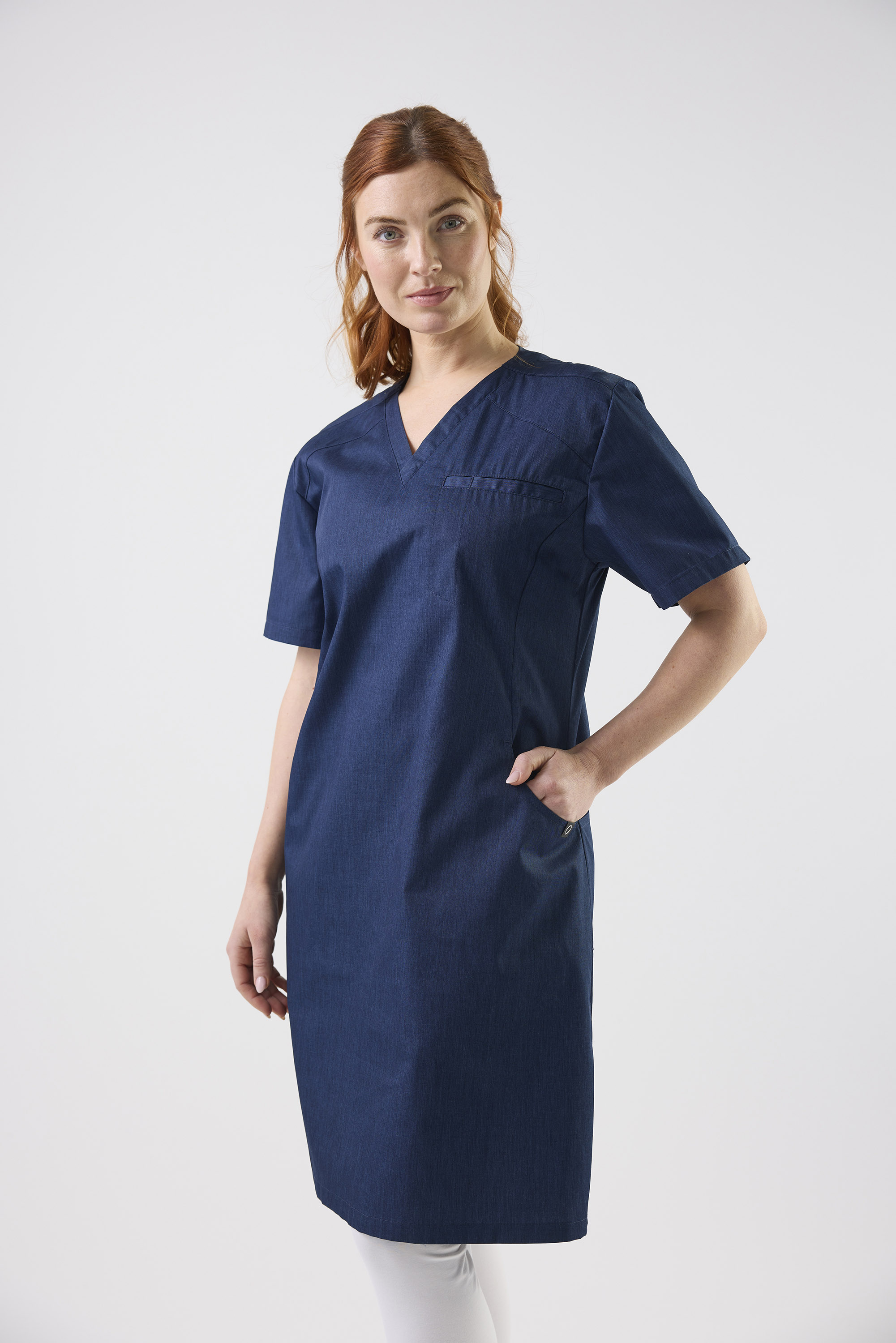 Mira Dress er en moderne og funksjonell kjole designet for deg som jobber innen helse, pleie og omsorg. Den V-formede halsen og de figursydde prinsessesømmene foran og bak gir en feminin silhuett, mens den lett innsvingede midjen gir en behagelig og fleksibel passform gjennom hele arbeidsdagen. Kjolen har flere praktiske detaljer som gjør hverdagen enklere i et aktivt arbeidsmiljø: romslige frontlommer, hvorav én med integrert mobillomme og nøkkelholder, brystlomme og ekstra lommer i sidepanelene. En splitt bak i panelet gir økt bevegelsesfrihet og fleksibilitet i arbeidshverdagen. Mira Dress er en del av South Wests kolleksjon med pleieklær – plagg som kombinerer slitestyrke, komfort og gjennomtenkt design for å møte kravene i din arbeidsdag. Med sitt stilrene uttrykk, funksjonelle detaljer og kvalitetsmaterialer er denne kjolen et perfekt valg for profesjonelle som ønsker å føle seg både velkledde og komfortable.