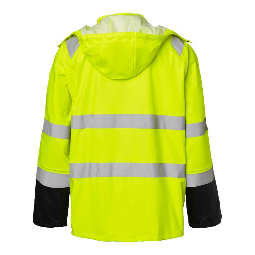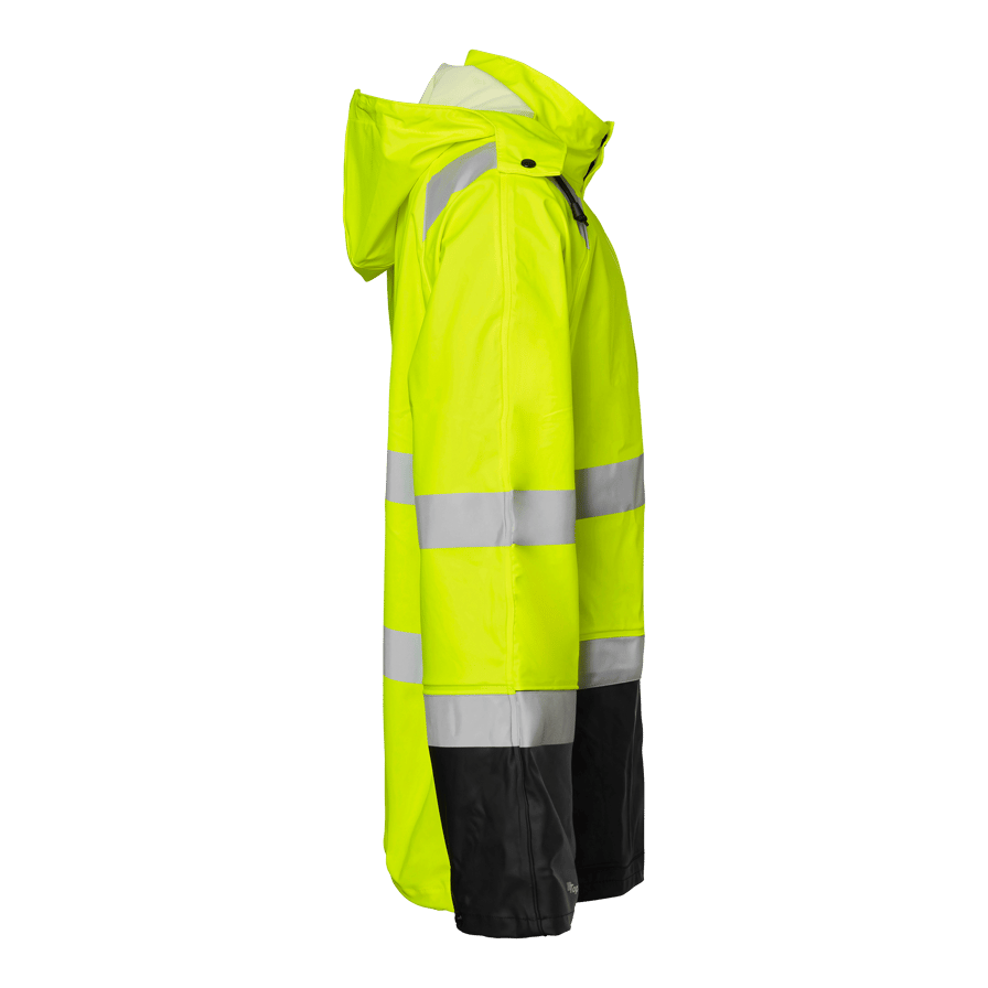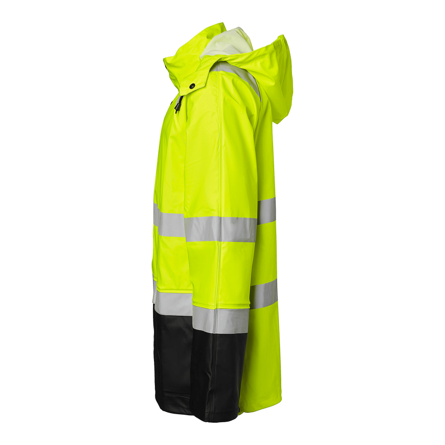 Oppdag Top Swede 180 Rain Jacket Hi-Vis, designet for fagfolk innen bygg og anlegg og industri som trenger maksimal beskyttelse og synlighet i regnvær. Regnjakken er laget av stretchstoff med sveisede sømmer for å sikre at du holder deg tørr selv under de mest utfordrende værforholdene. Jakken har glidelås med stolpelås og trykknapper for ekstra beskyttelse mot fuktighet. Den skjulte ID-kortlommen, den avtakbare hetten med snøring og de to frontlommene med klaff gir praktisk oppbevaring av verktøy og tilbehør. Innerlommen og telefonlommen gir ekstra sikker oppbevaring av personlige eiendeler. Med snøring i nederkant og justerbare mansjetter kan du tilpasse passformen for optimal komfort. Jakkens lengde på 80 cm gir ekstra beskyttelse og dekning. Top Swede 180 Rain Jacket Hi-Vis kombinerer slitestyrke, funksjonalitet og høy synlighet, noe som gjør den ideell til bruk i en lang rekke arbeidsmiljøer der sikkerhet og beskyttelse er avgjørende. – Velg Top Swede for arbeidsklær du kan stole på både på og utenfor jobben.