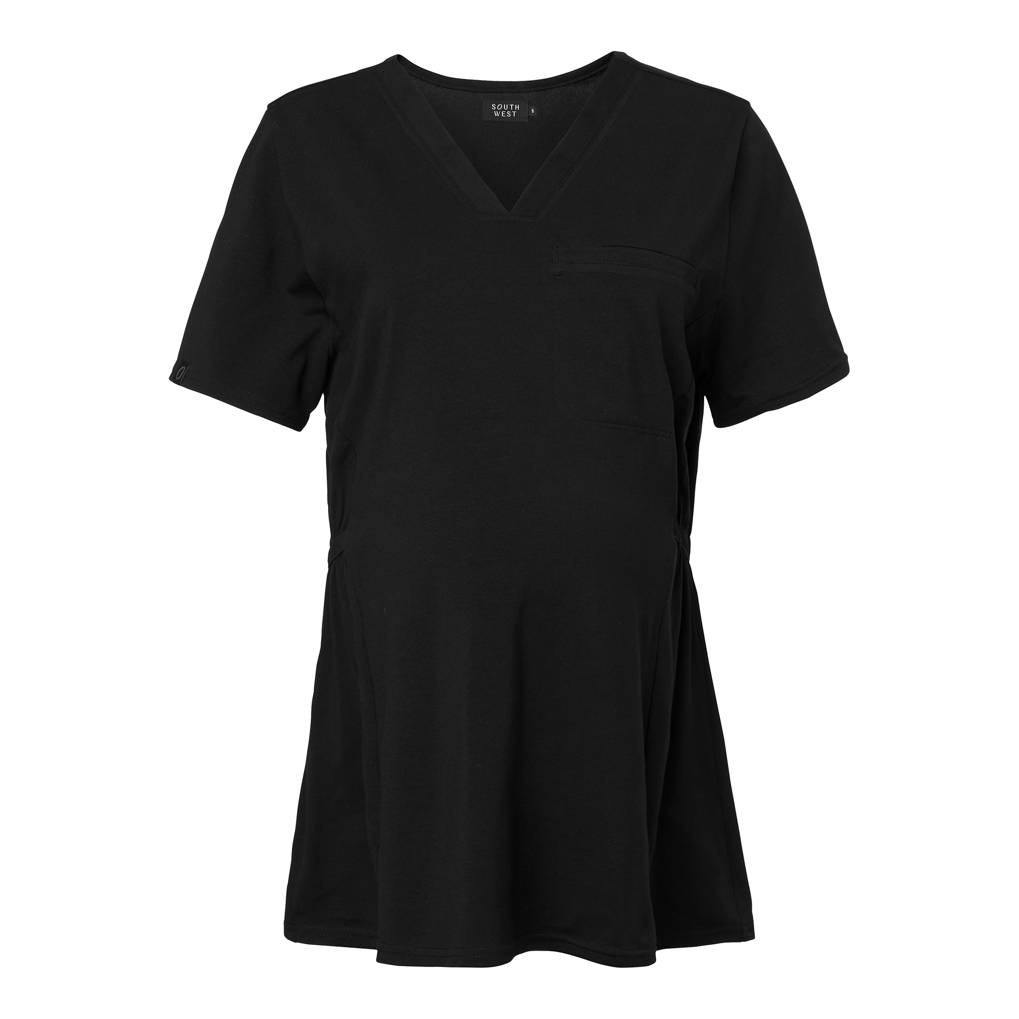 Tess Maternity Blouse er en nøye utviklet mammabluse for deg som jobber innen helse, omsorg og pleie. Den er laget i mykt og elastisk jerseymateriale som følger kroppens former og gir optimal komfort gjennom hele arbeidsdagen. Den V-formede halsen og de rene prinsessesømmene foran og bak gir en feminin og flatterende silhuett, mens den lett innsvingede midjen gir et godt tilpasset uttrykk også under graviditeten. Blusen har knapphullstrikk i midjen på begge sider for enkel justering etter magen vokser og for å sikre en fleksibel passform. En brystlomme på venstre side gir plass til penner eller små redskaper du trenger lett tilgjengelig i løpet av arbeidsdagen. Tess Maternity Blouse er en del av South Wests kolleksjon av pleiebekledning – utviklet med fokus på funksjon, komfort og slitestyrke for deg som tar vare på andre. Med gjennomtenkte detaljer og materialer av høy kvalitet er denne blusen et naturlig valg for gravide fagpersoner som ønsker både stil og funksjon.