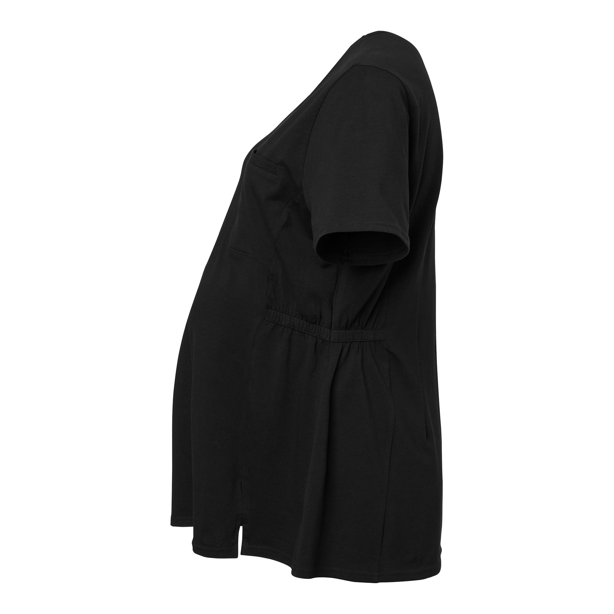 Tess Maternity Blouse er en komfortabel V-hals mammabluse i myk trikot med prinsessesøm foran og bak. Den fleksible passformen justeres enkelt med knapphullsstrikk i midjen på begge sider. Utstyrt med en praktisk brystlomme på venstre side.
