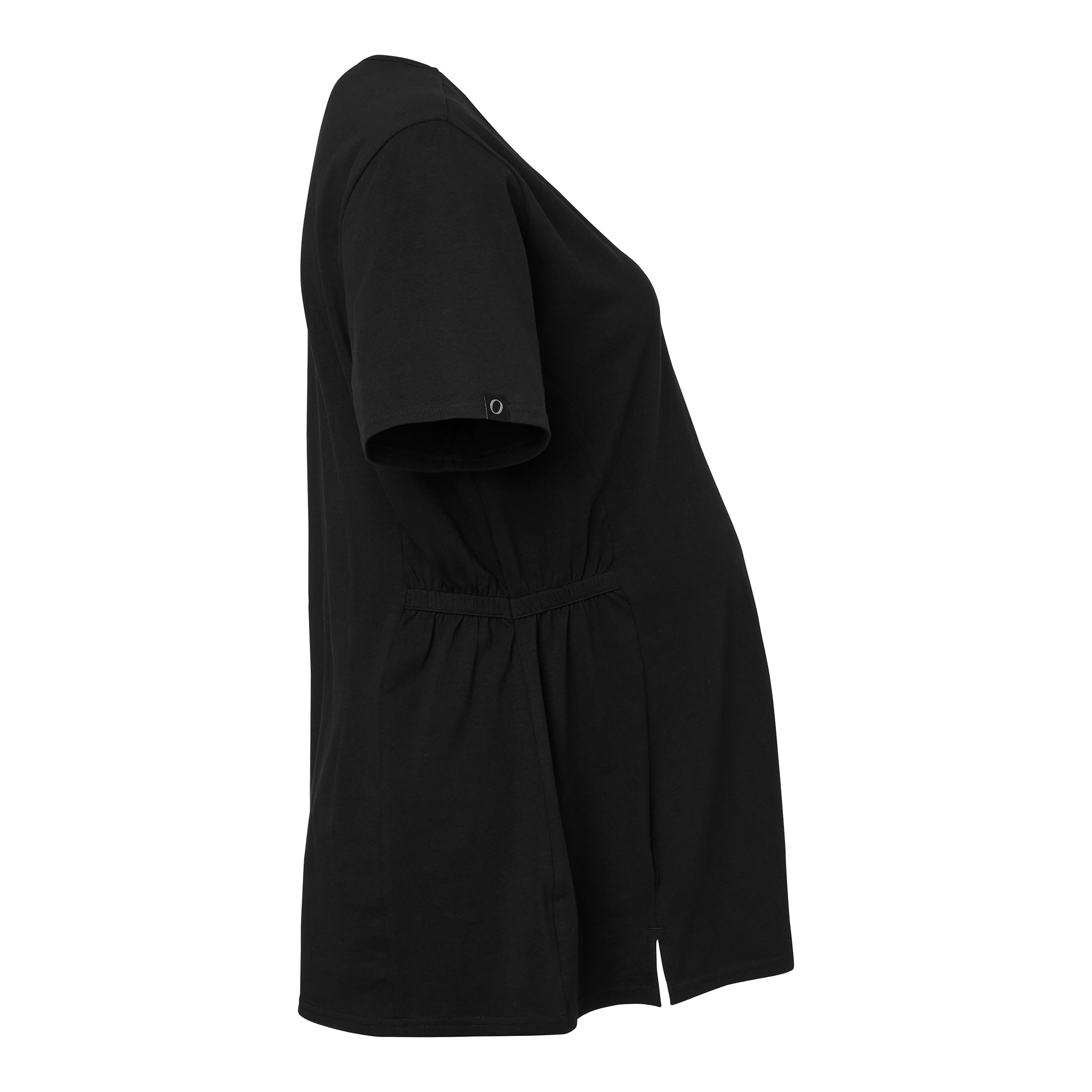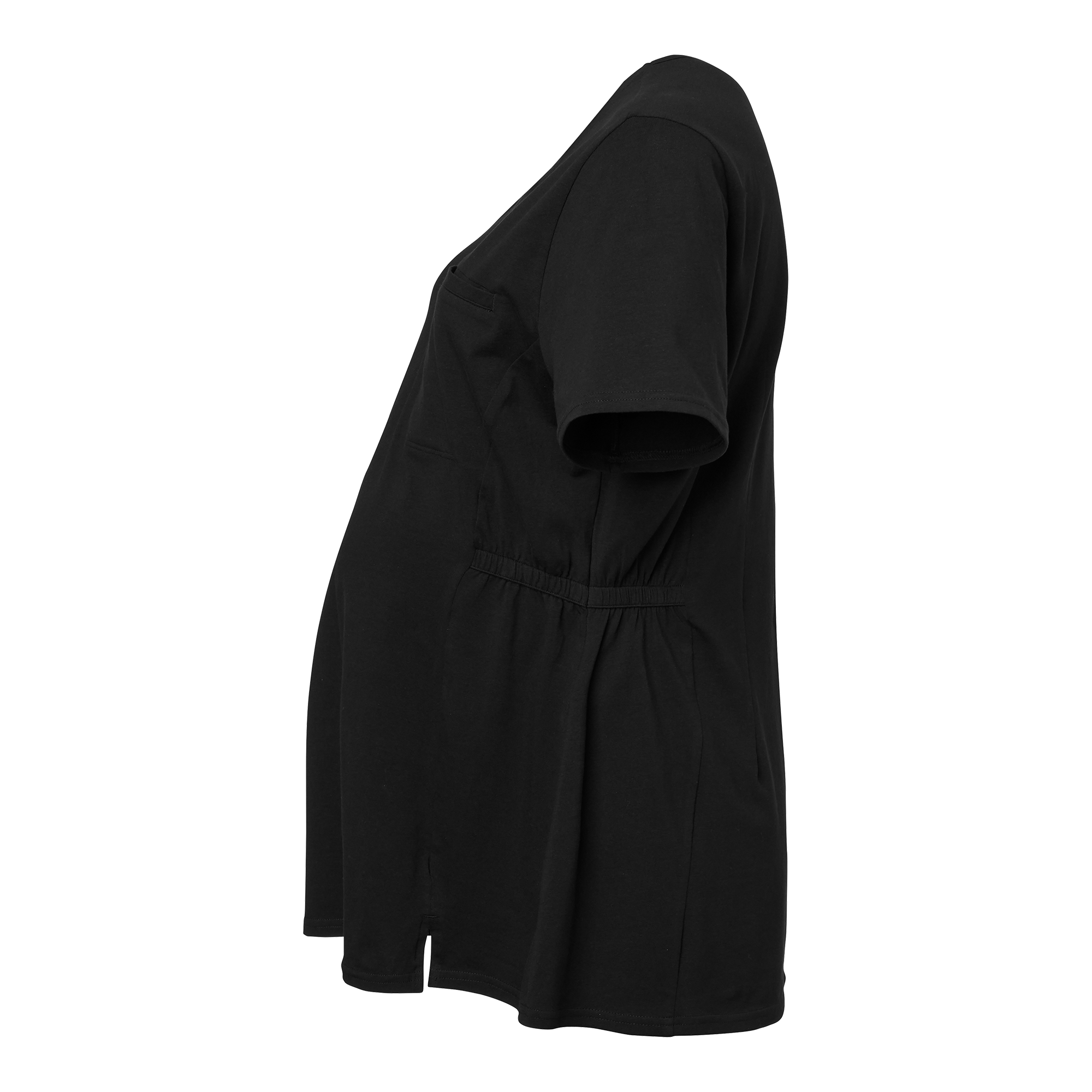 Tess Maternity Blouse er en komfortabel V-hals mammabluse i myk trikot med prinsessesøm foran og bak. Den fleksible passformen justeres enkelt med knapphullsstrikk i midjen på begge sider. Utstyrt med en praktisk brystlomme på venstre side.