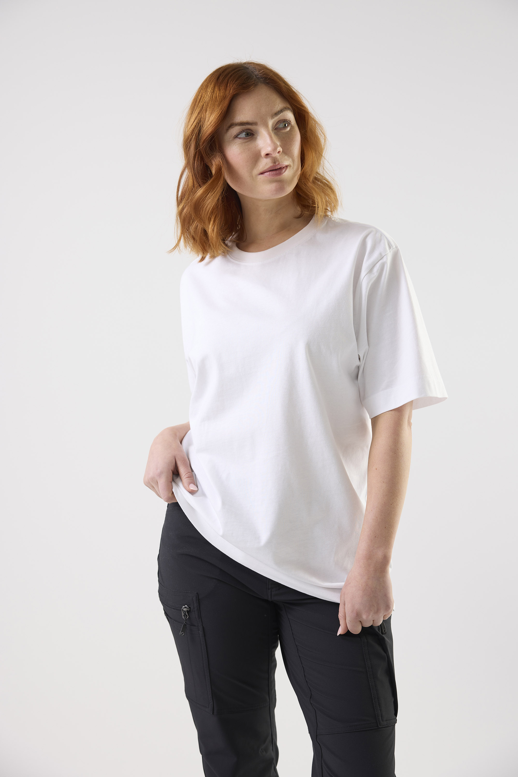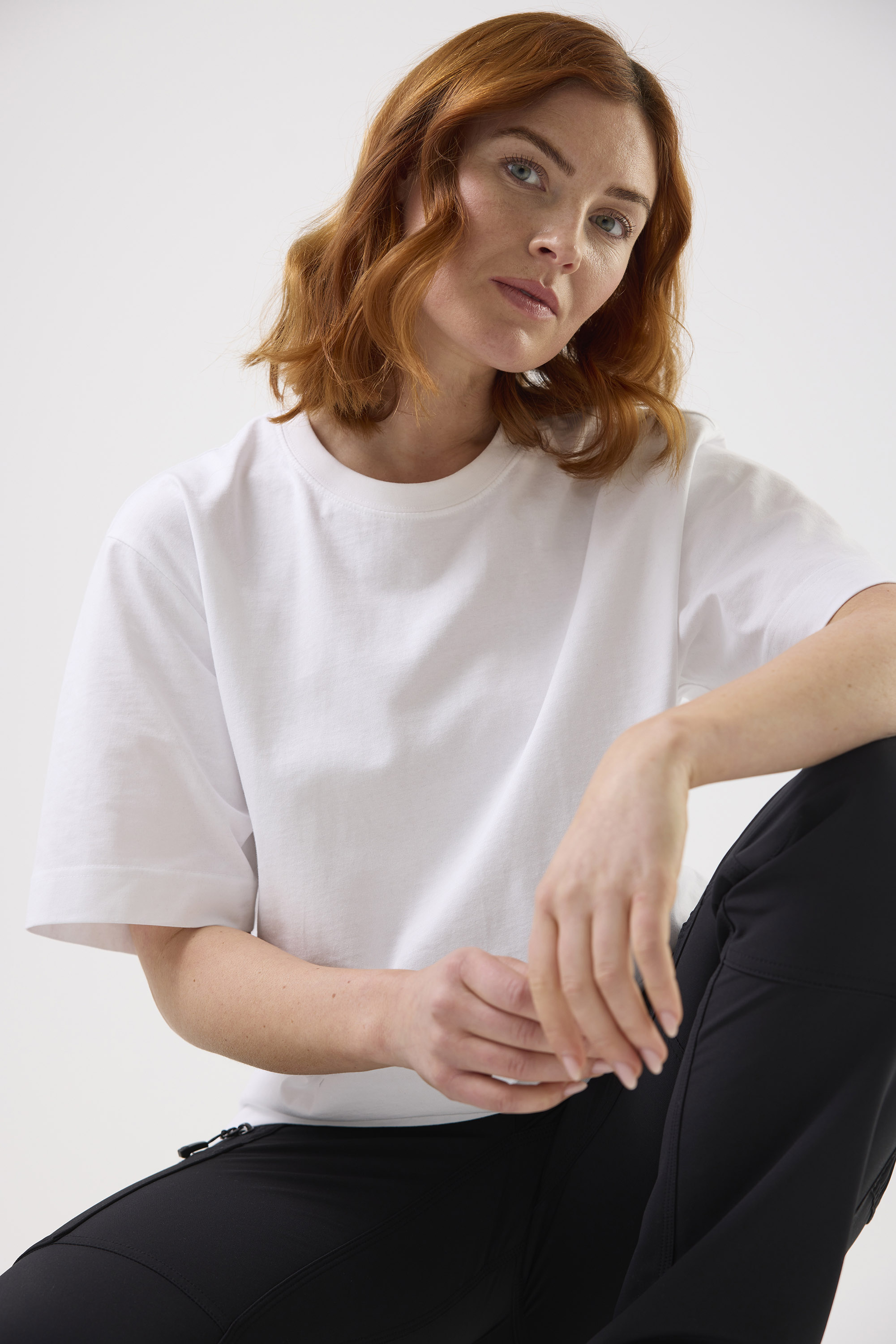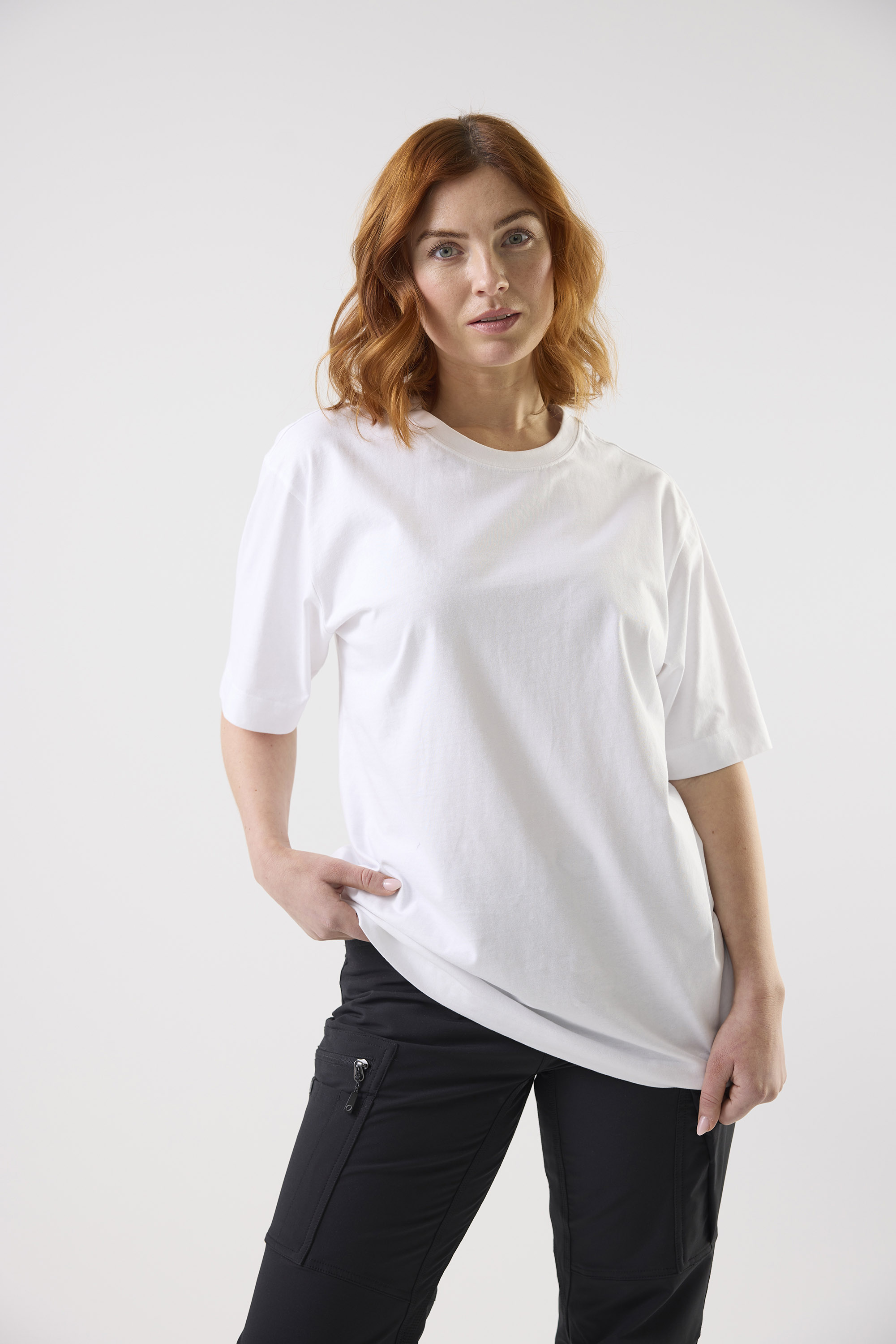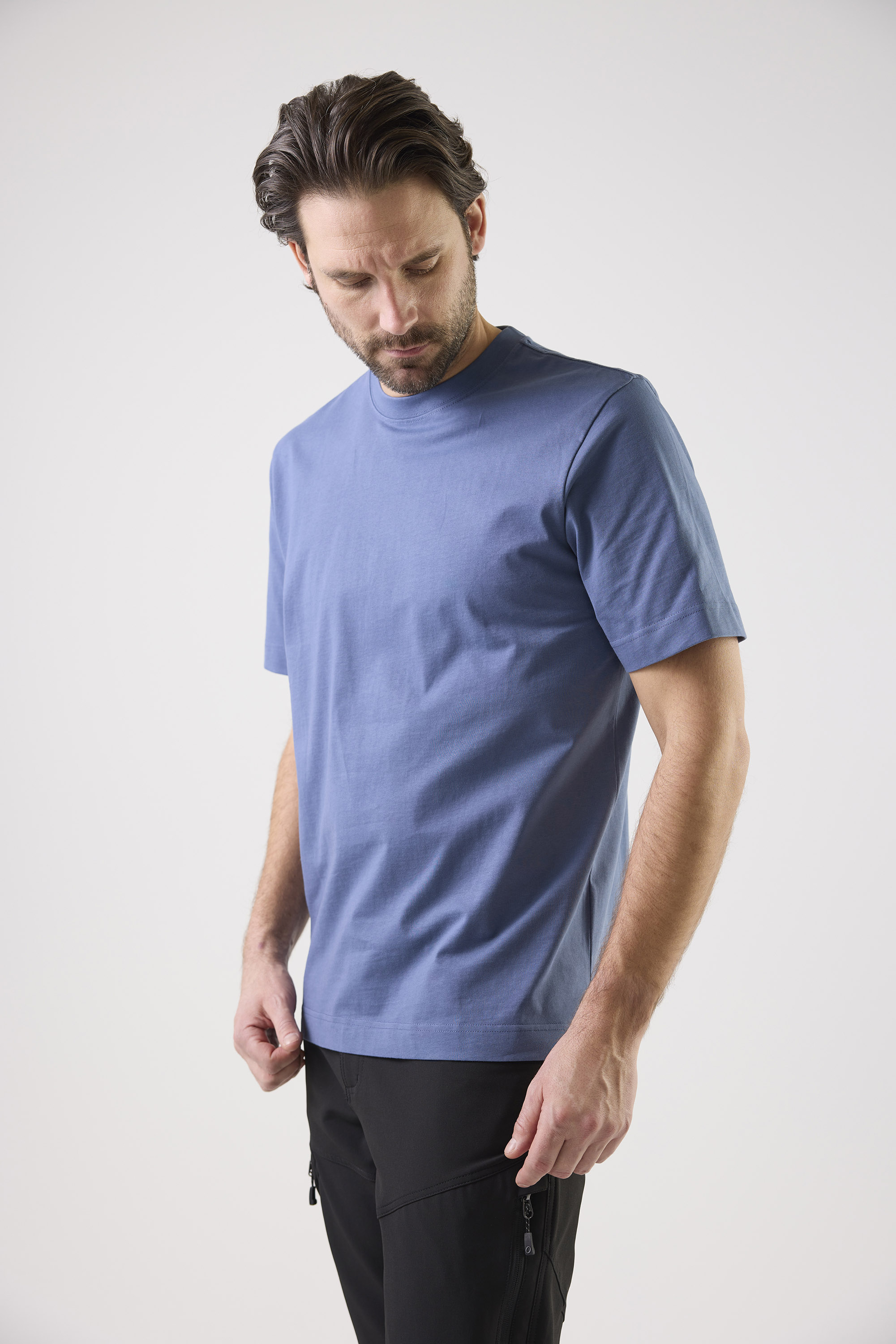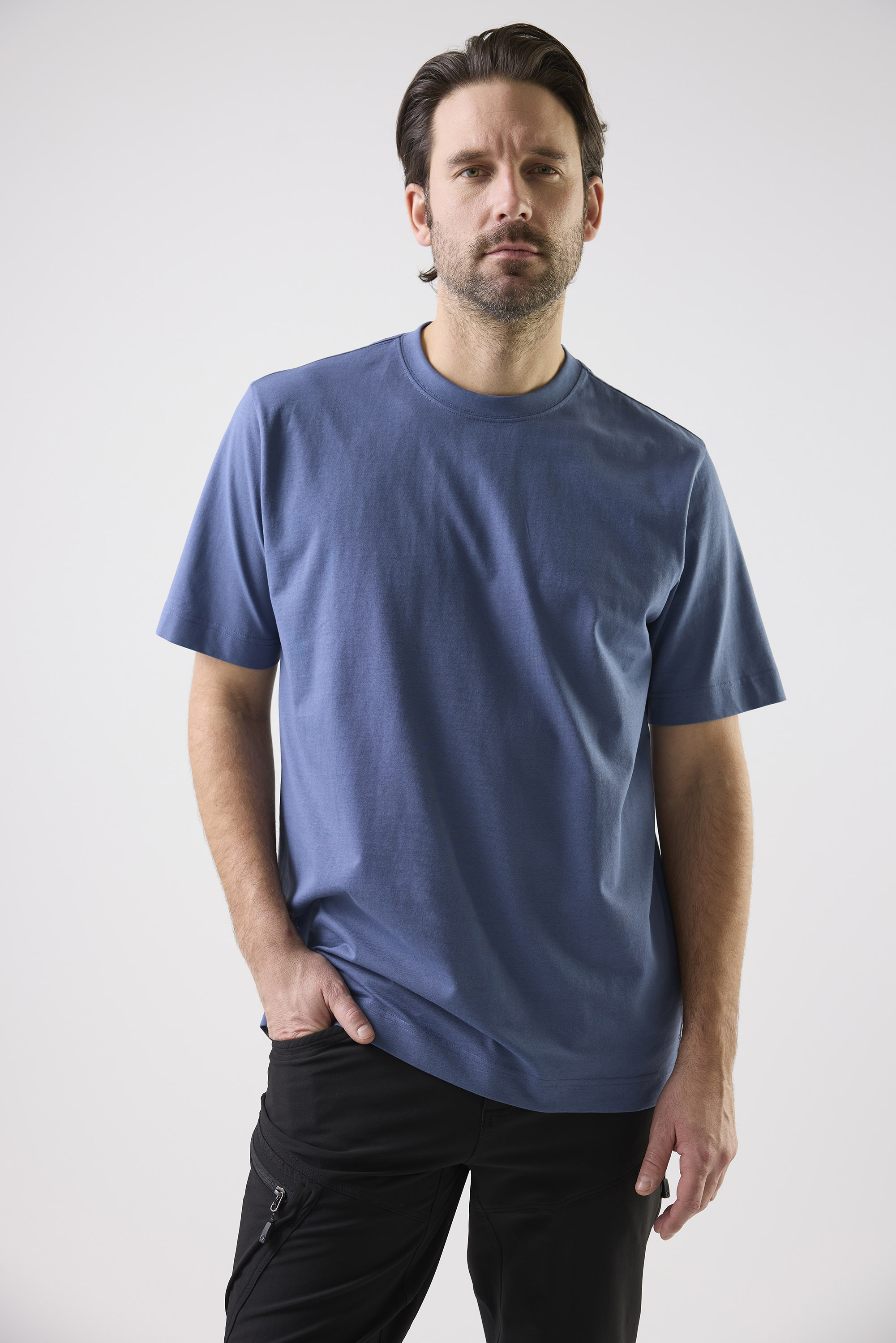 T-skjorte i 100 % GOTS-sertifisert bomull med rund hals. Smal passform for en komfortabel og stilig look, perfekt for både jobb og fritid. Velg en størrelse større hvis du ønsker en moderne oversized look. Detaljer som strikk i mansjettene og slisser i sidene. T-skjorten er laget uten halsetikett, noe som gir deg muligheten til å tilpasse den.