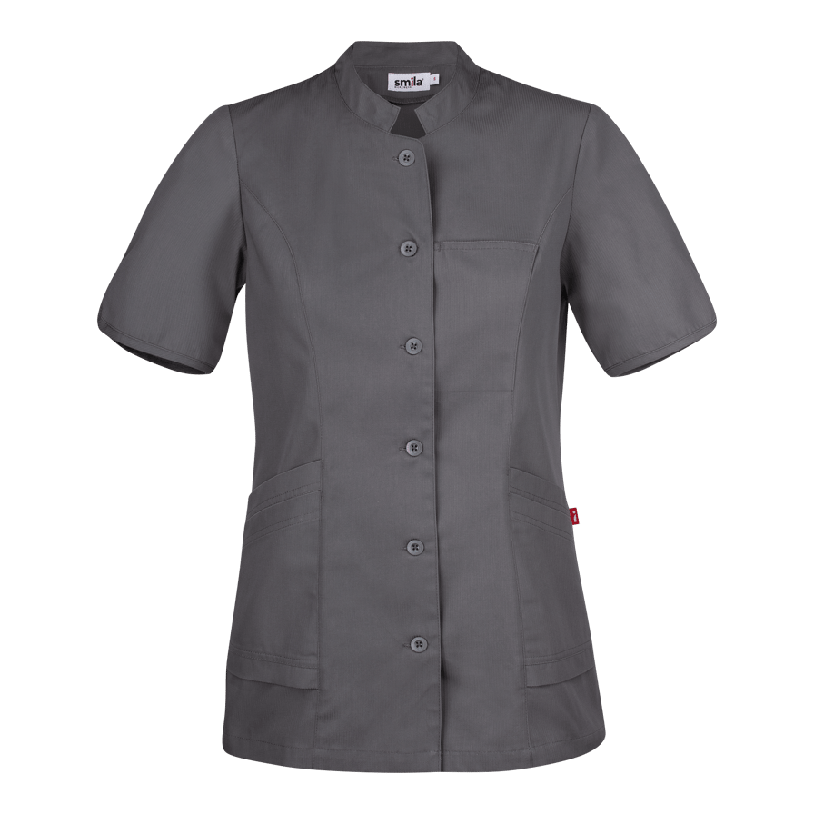 Bluse med hakk krage og knapper foran. Komfortabel modell med god bevegelighet, doble skrålommer foran inkludert nøkkel-/kortholder og brystlomme. Båndmansjetter med liten kile. Slisser i siden.