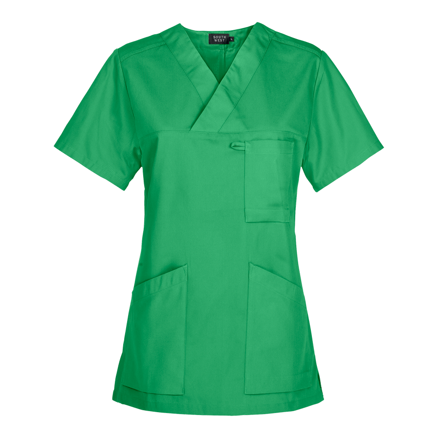 Alva Tunic fra South West er en stilig bluse med V-hals som er designet spesielt for kvinner i omsorgsyrker. Med sin smale passform og lett avsmalnende midje kombinerer den stil og funksjonalitet på en harmonisk måte. De romslige frontlommene er praktisk utformet med både nøkkelholder og mobillomme, mens brystlommen med kortholder gir enkel tilgang til ID-kort eller andre viktige gjenstander. Alva Tunic er designet for å gi komfort under lange arbeidsdager, samtidig som den opprettholder en profesjonell og stilig profil. Den store størrelsesforskjellen mellom de ulike størrelsene sikrer at alle brukere finner en perfekt passform. South Wests satsing på kvalitet og slitestyrke gjør Alva Tunic til et pålitelig og stilig valg for profesjonelle kvinner som setter pris på både estetikk og funksjon i arbeidstøyet sitt.