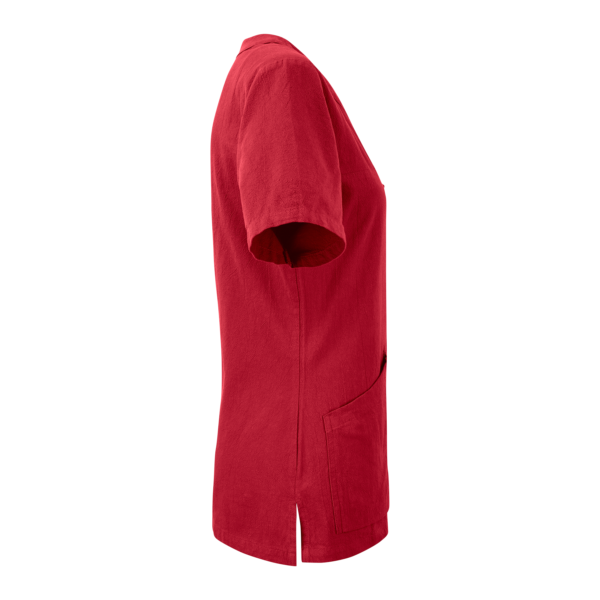 Bluse med V-hals, smal passform og figursydd midje. Utstyrt med romslige lommer foran, inkludert nøkkelholder og mobillomme, og brystlomme med ringknapp og kortholder.