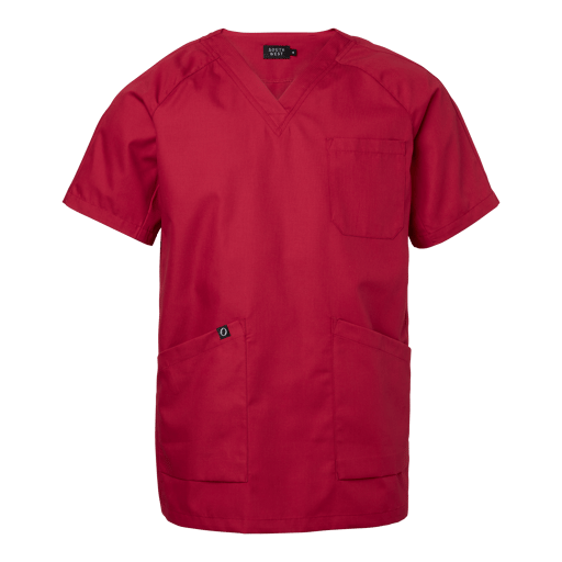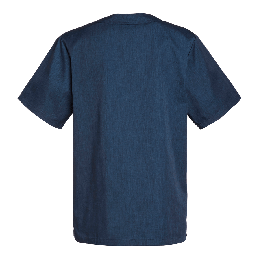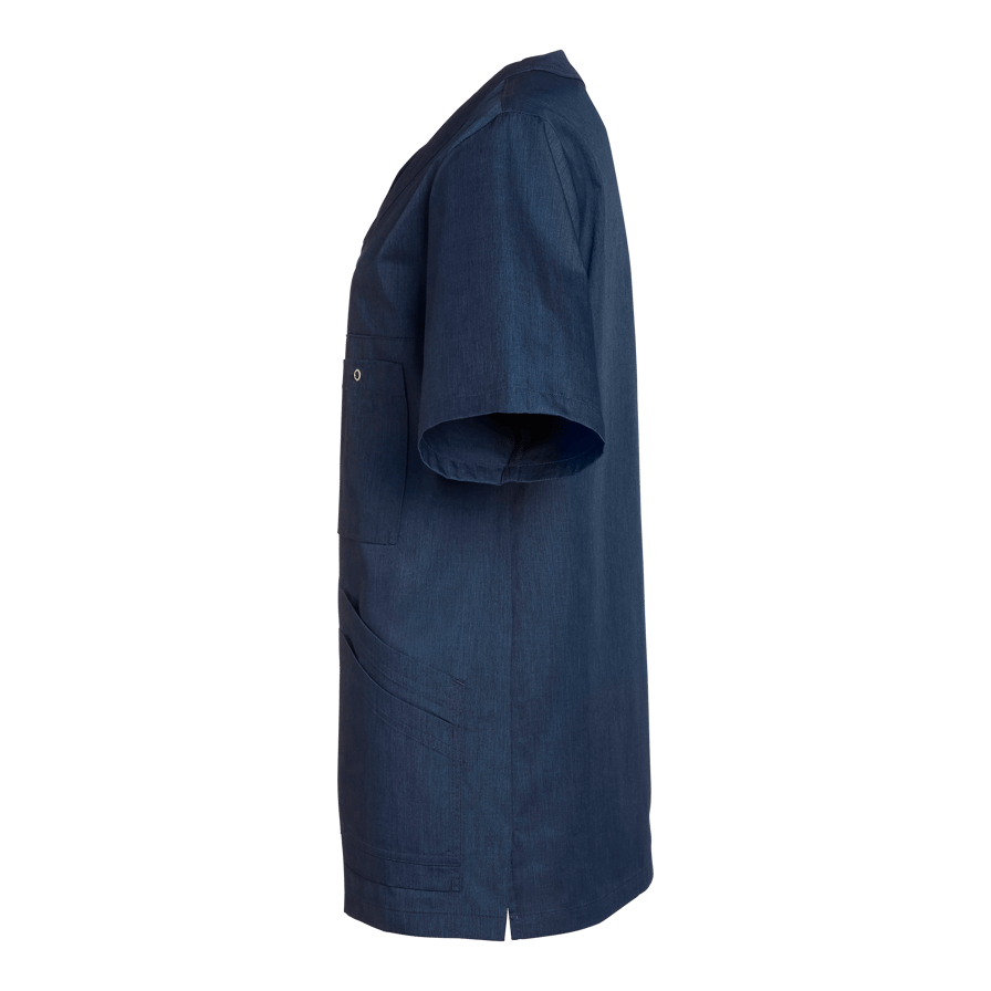 Unisex V-tunika i en komfortabel og romslig modell. Doble skrålommer foran og brystlomme med belg, nøkkelholder og ringknapper. Slisser i sidene.