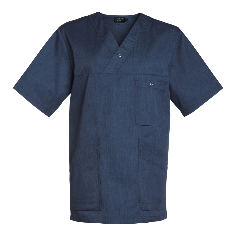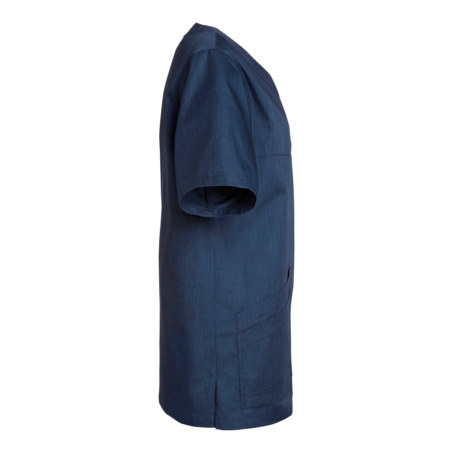 Unisex V-tunika i en komfortabel og romslig modell. Doble skrålommer foran og brystlomme med belg, nøkkelholder og ringknapper. Slisser i sidene.