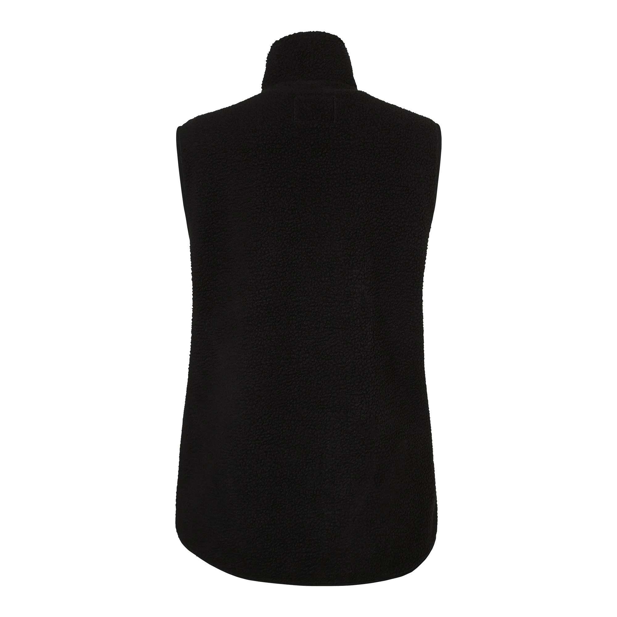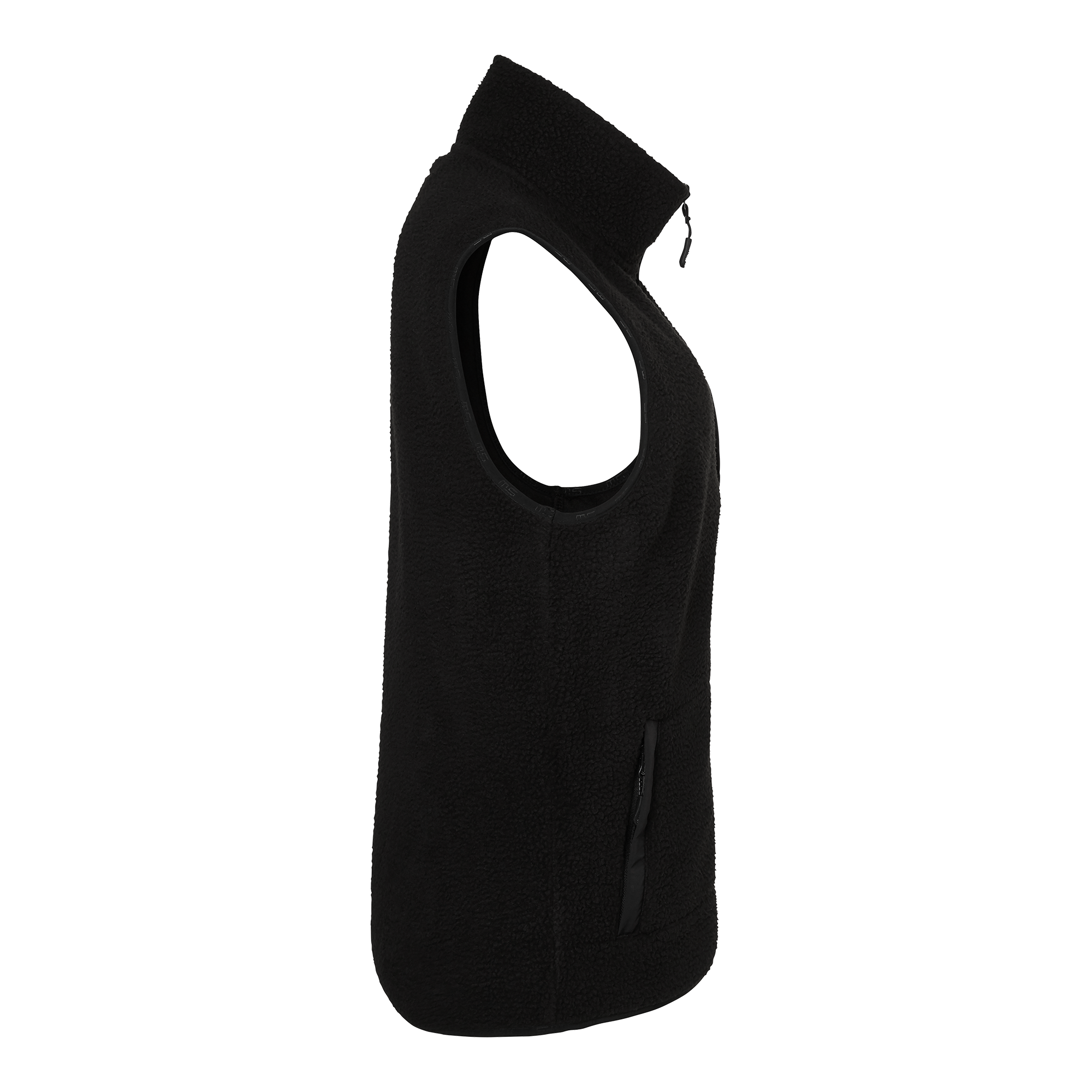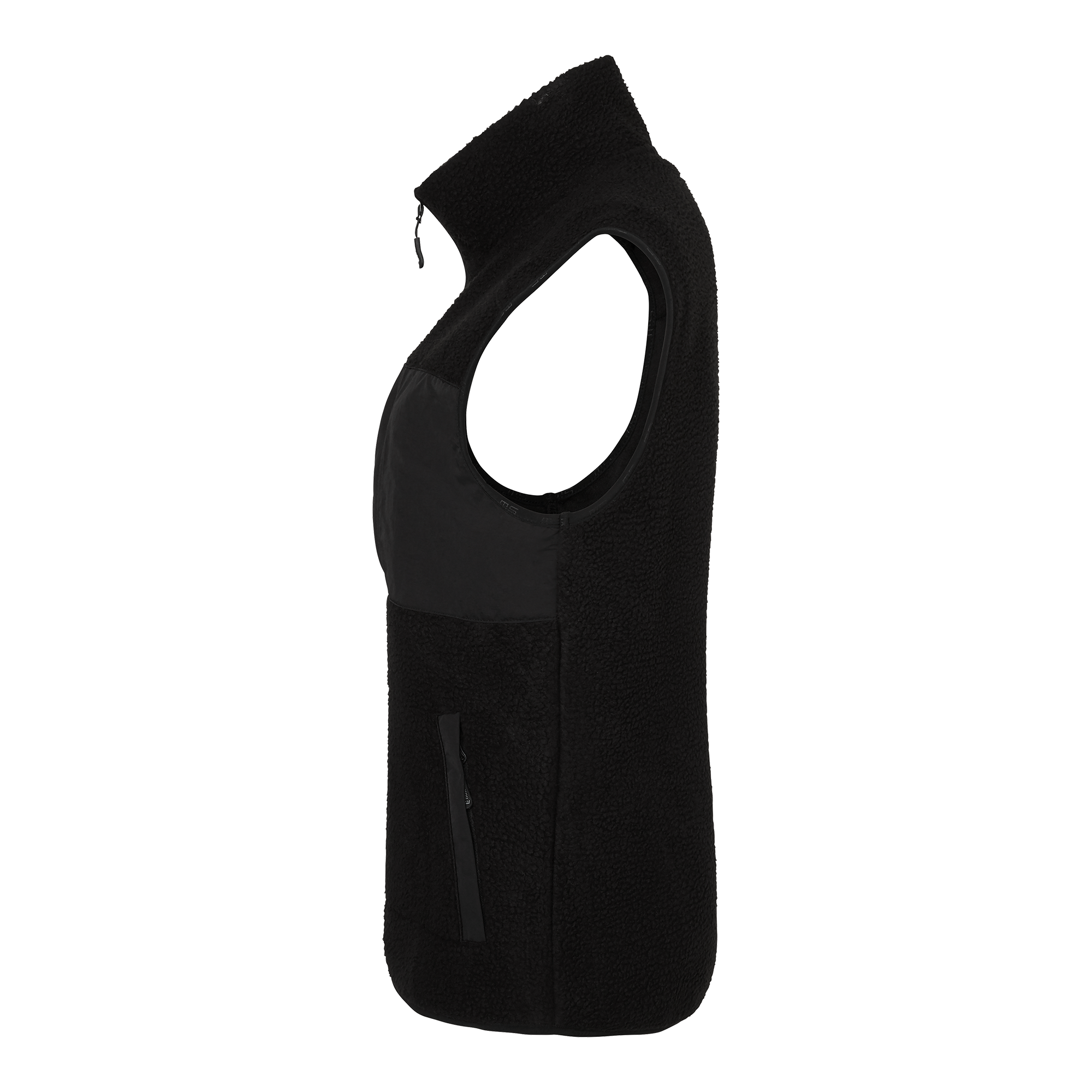Vesten i sherpafleece har en tettsittende dampform med myk innside og luftig utside. Utstyrt med to sidelommer, passpoallommer og en brystlomme med glidelås. Svarte vevde paneler, avrundet bakkant og diskret SW-bånd i enden av plagget.