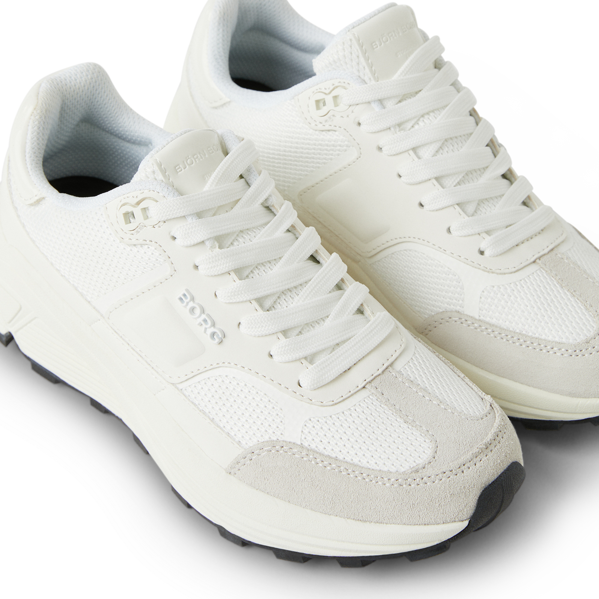 Björn Borg R1300 er en allsidig sko som kombinerer stil og komfort. Overdelen i tekstilmesh og syntetisk skinn kompletteres av en solid såle og en Borg-logo i metall som gir et trendy utseende. Den tykke, lette gummisålen gir utmerket grep, og den utskiftbare innersålen gjør det enkelt å ta vare på skoen.