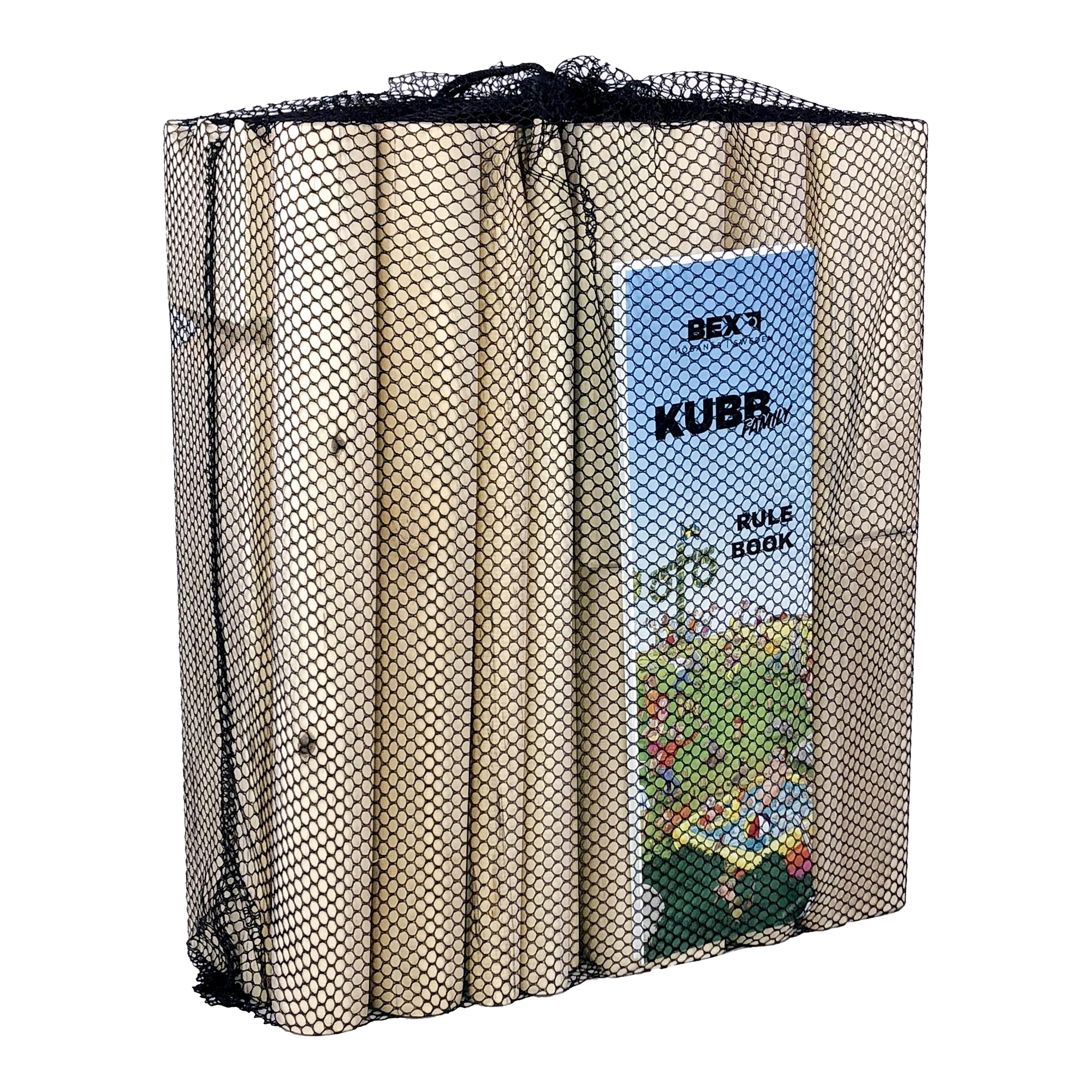 Basic kubbspill i bjørk – perfekt for nybegynnere. Inneholder konge, 6 kastepinner, 10 kubber, 4 markører, regler og nettpose for oppbevaring. Vekt 3,7 kg. Kan males i ulike farger eller oljebehandles for lengre holdbarhet.