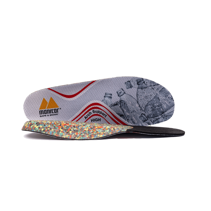 Monitor Arch Support low er en innleggssåle laget av resirkulert polyuretan med høy fotbuestøtte. Innersålen er godkjent for bruk i alle våre Monitor-sertifiserte vernesko og arbeidssko uten å miste godkjenningen.