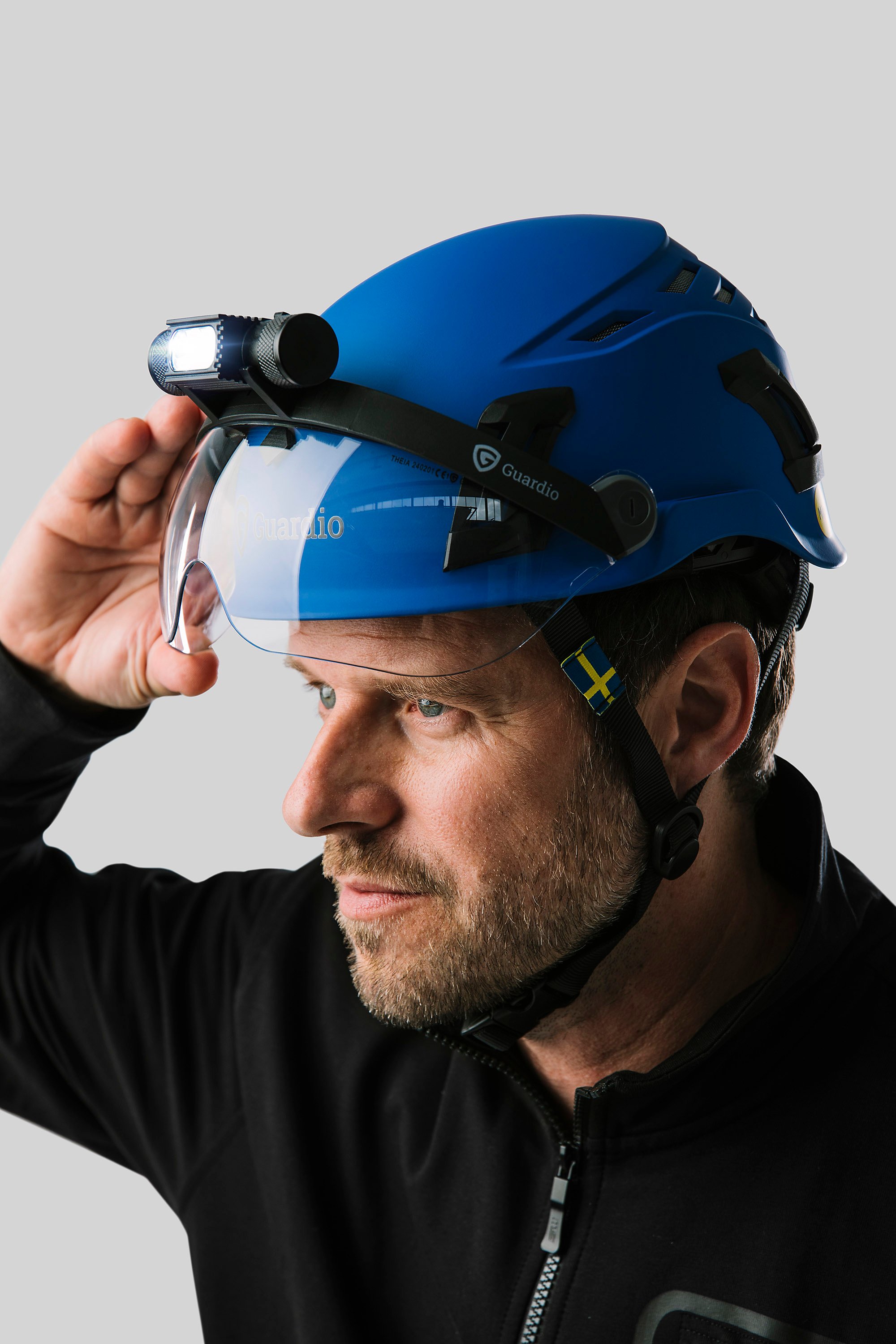 Theia beskyttelsesvisir (EN166 1B) for Guardio ARMET-hjelmer. Beskytter øynene mot støt i høye hastigheter, er ripebestandig og antiduggbehandlet.