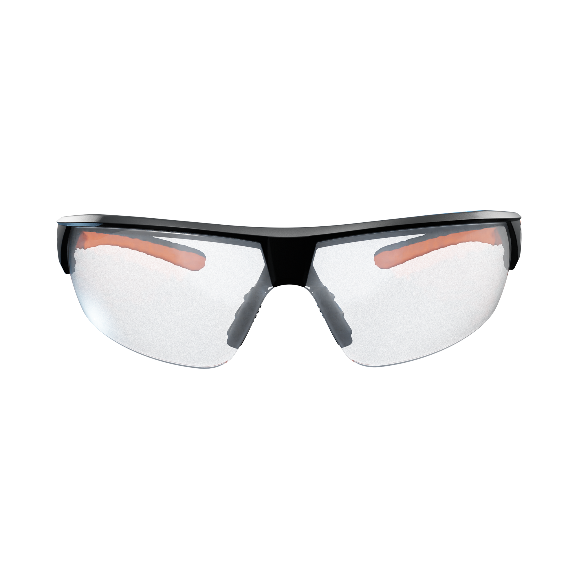 Skyddsglasögon med fotochromiska linser som ändrar färg efter UV-ljus. Tunna skalmar för minimalt bullerläckage, bekväm näsbrygga och vinklade skalmar.