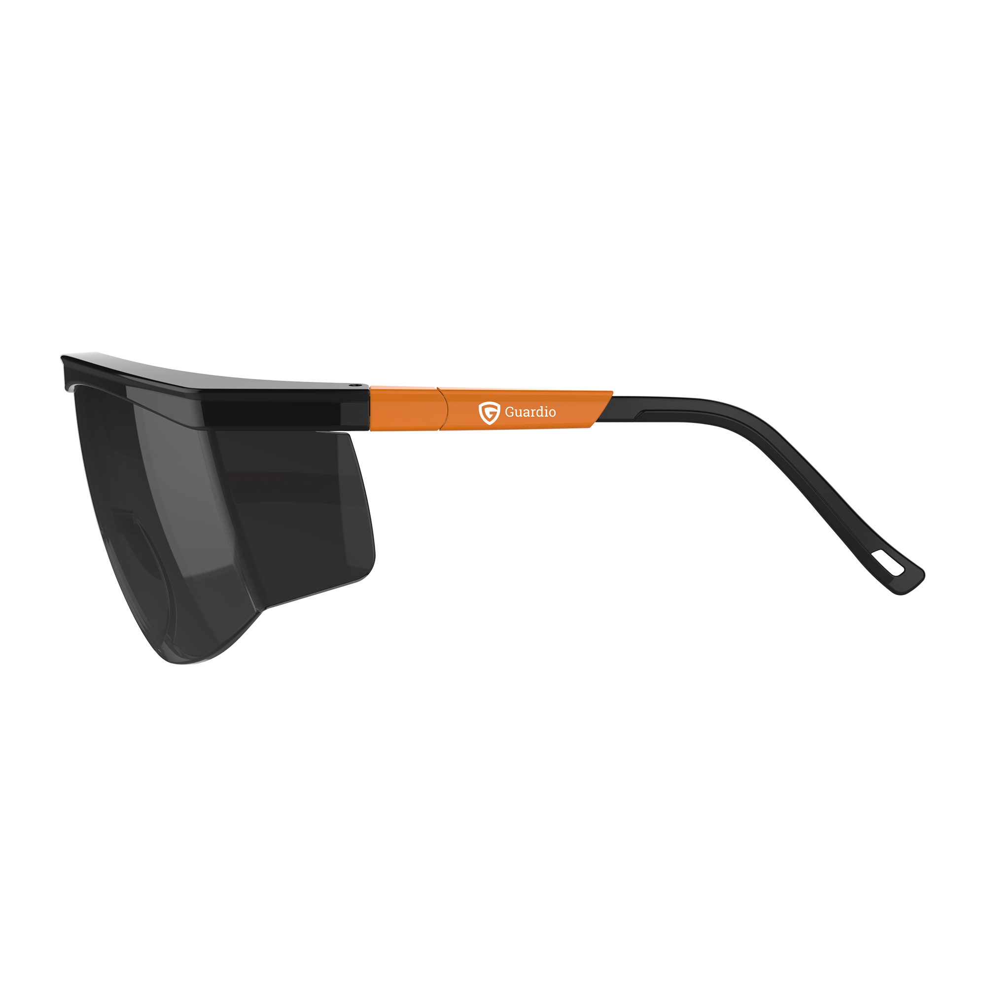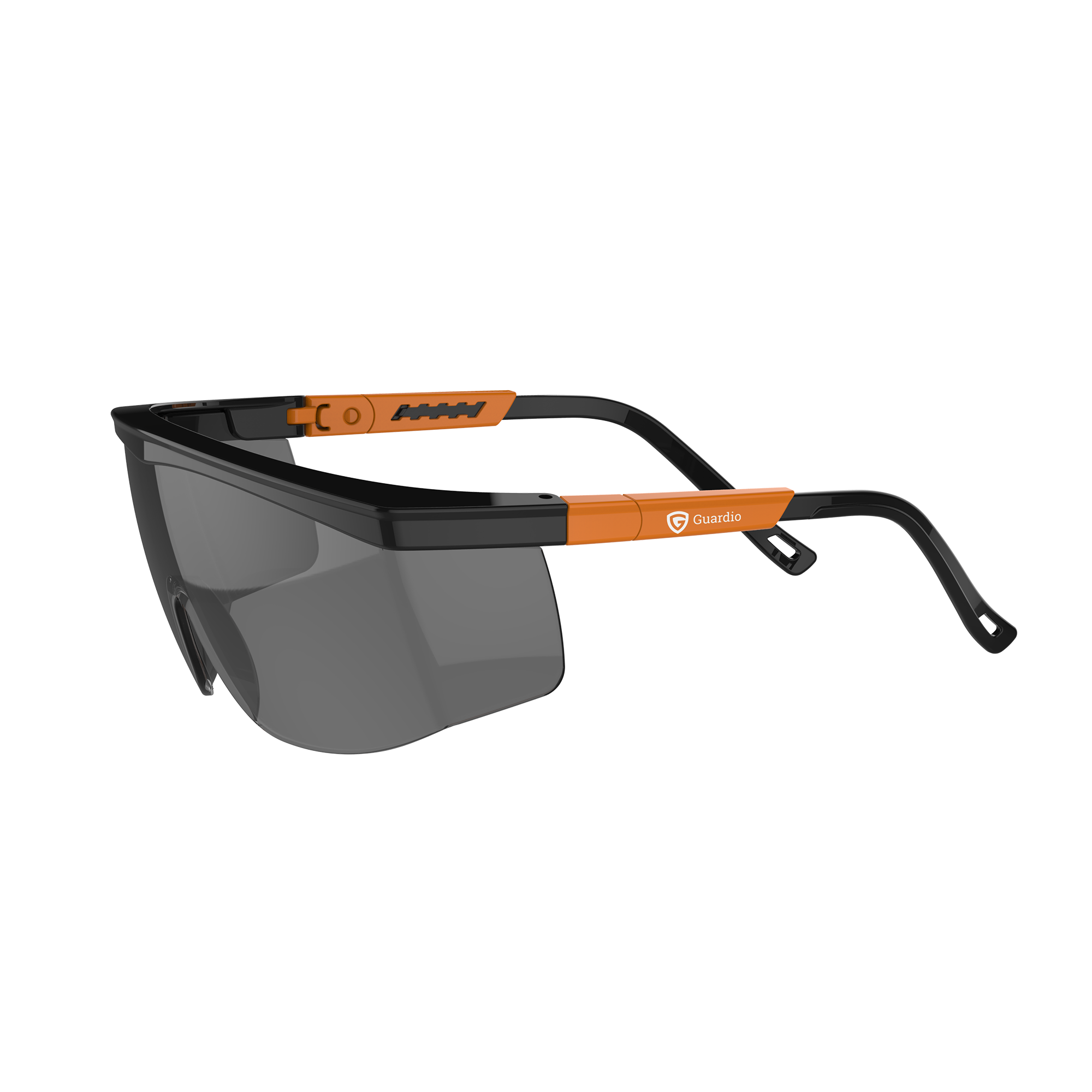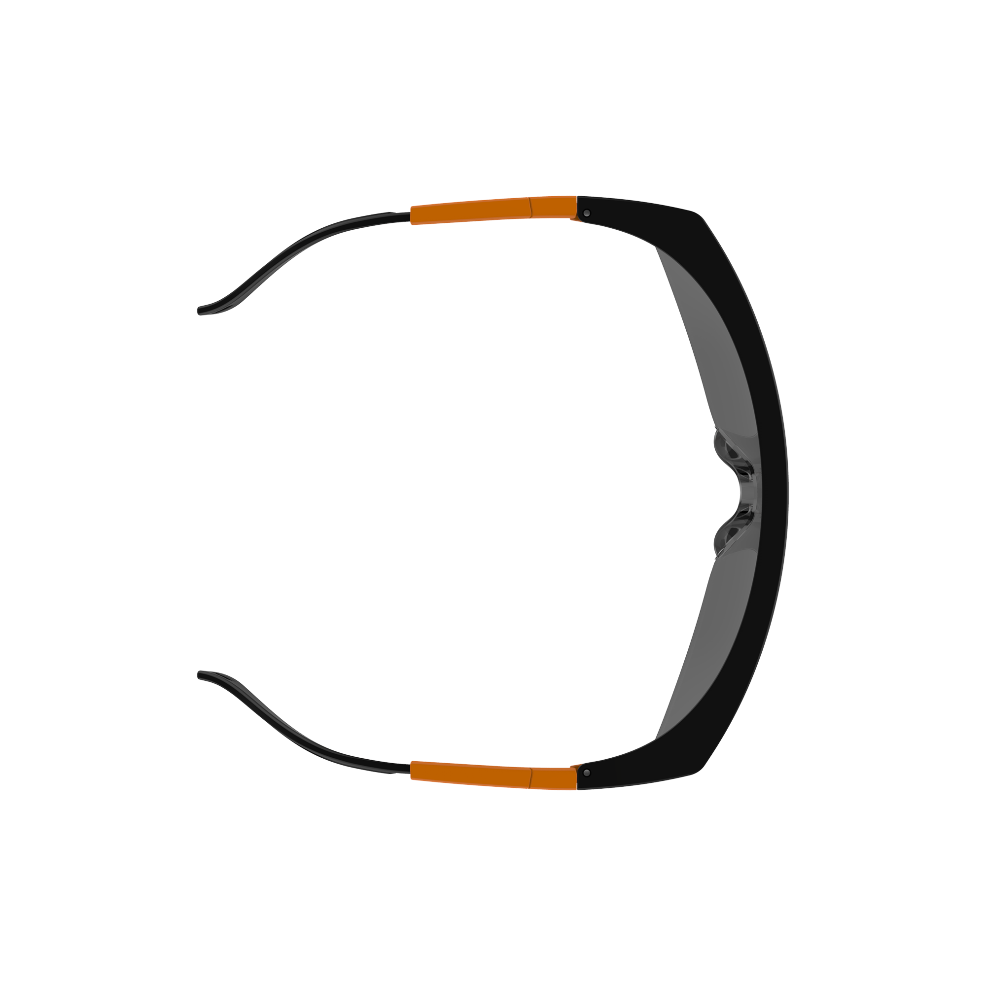 Skyddsglasögon som kan bäras över receptglasögon, tillverkade i biobaserad plast. Justerbara skalmar för perfekt passform.