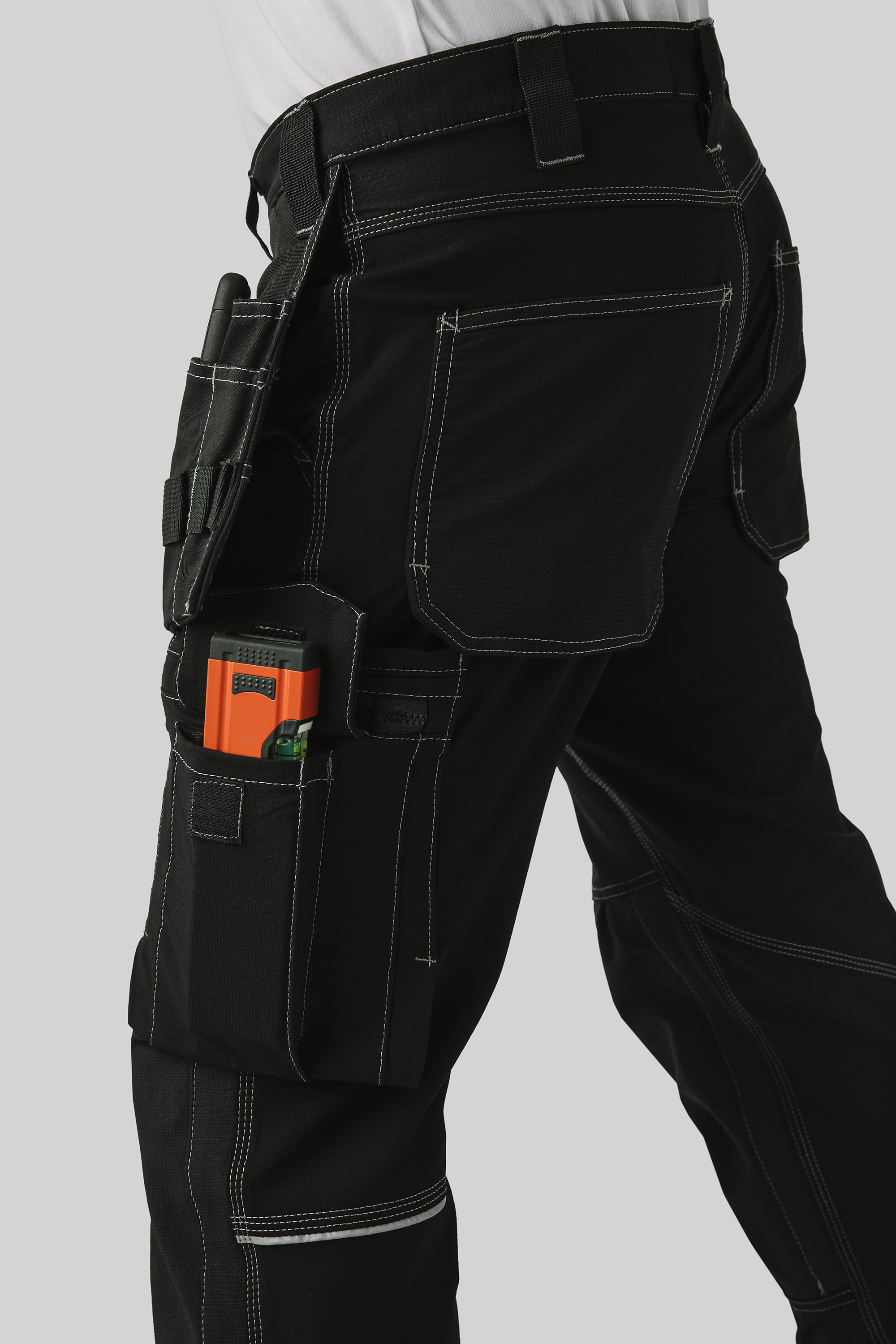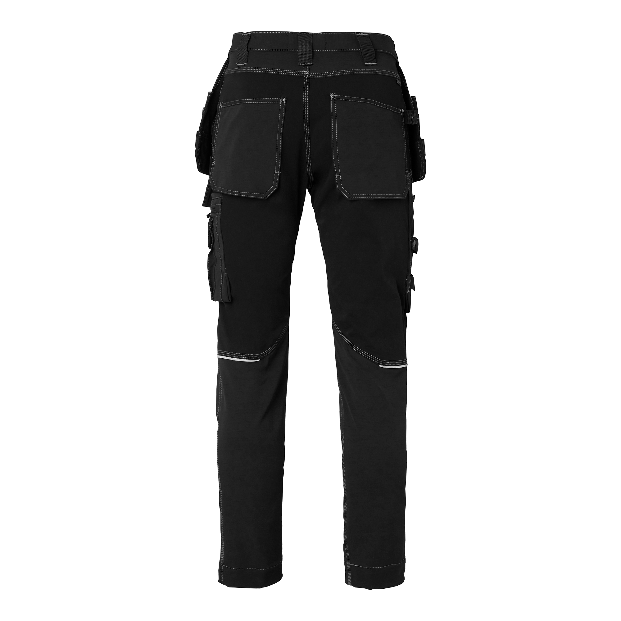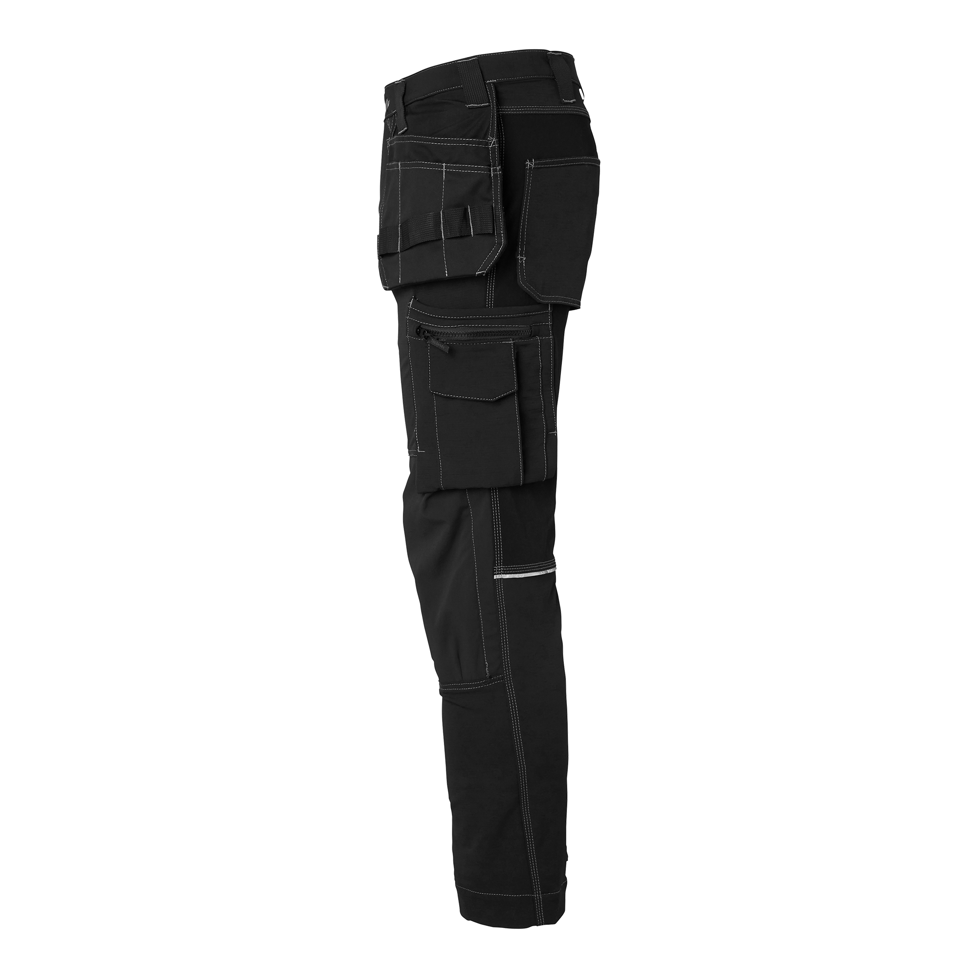 Hantverksbyxa i 4-vägs stretch med förböjda ben och knäfickor av Cordura®. Två framfickor, förstärkta bakfickor, löst hängande spikfickor med extra fack, benficka med dragkedja och reflexdetalj bak. Perfekt för krävande arbetsmiljöer.