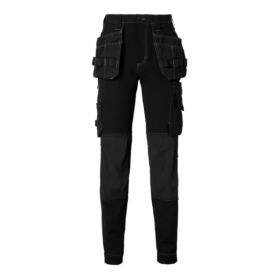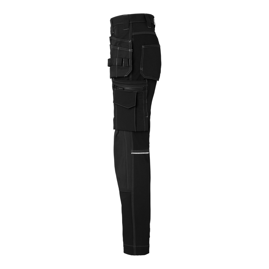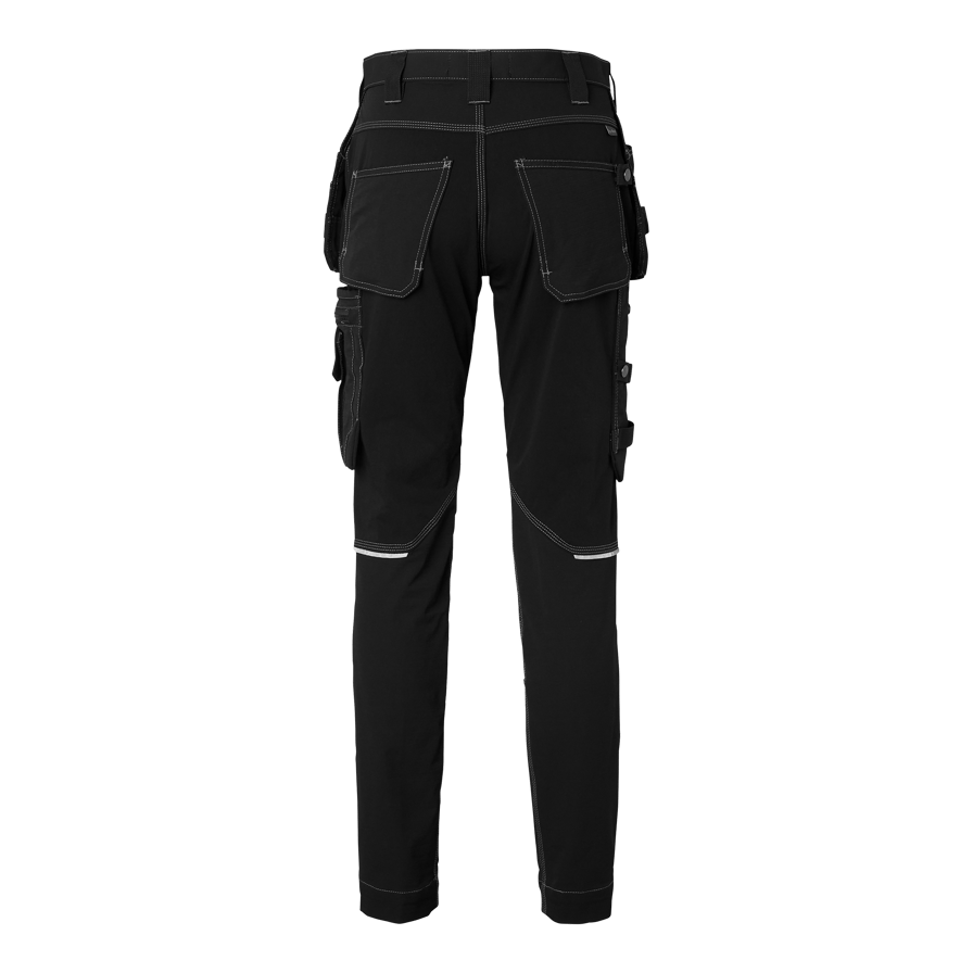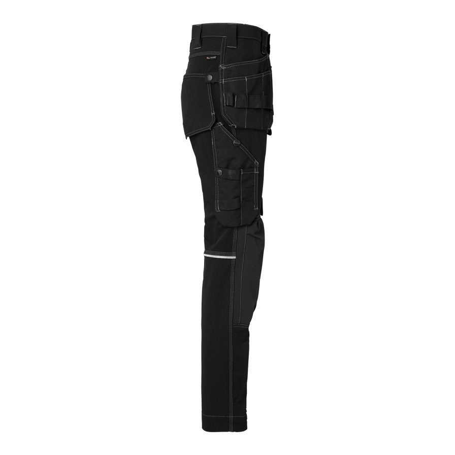 Hantverksbyxa i dammodell med 4-vägs stretch. Förböjda ben och knäfickor av Cordura®. Två framfickor, förstärkta bakfickor, löst hängande spikfickor, benficka med dragkedja och reflexdetaljer bak. Perfekt för krävande arbetsmiljöer.