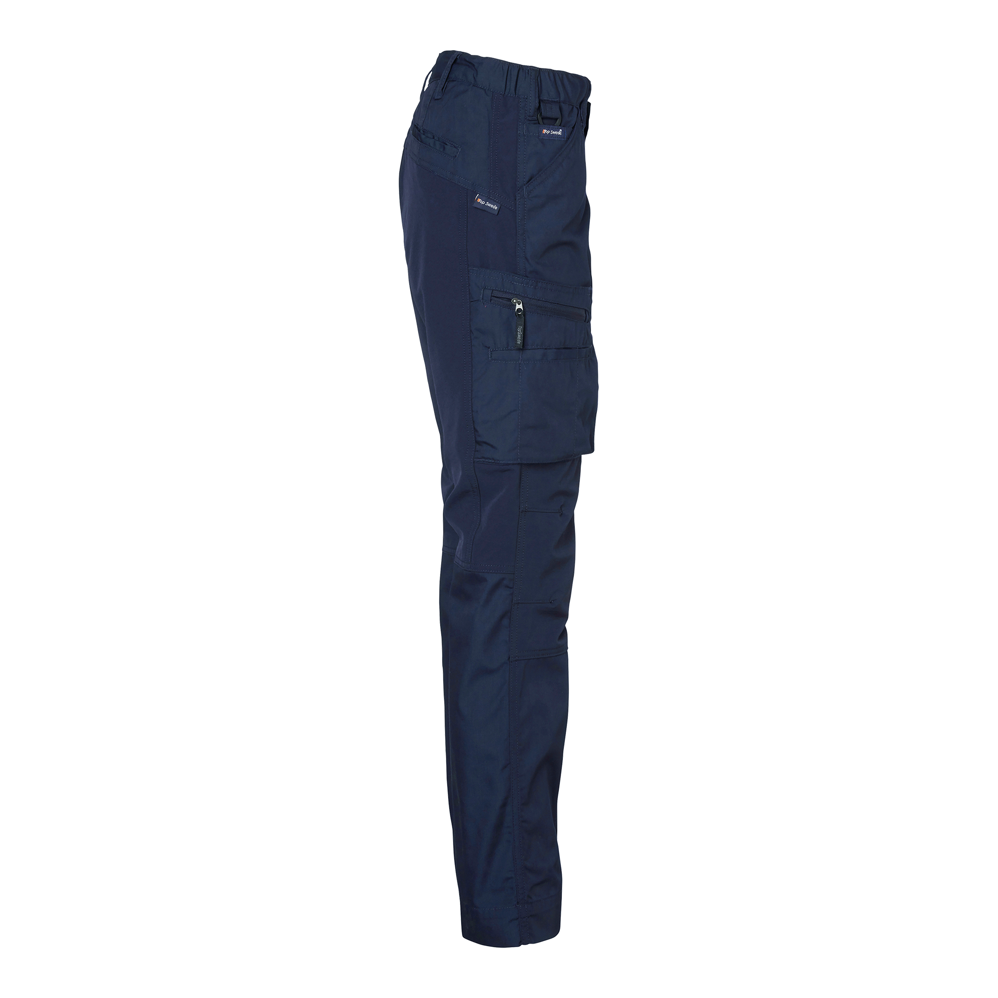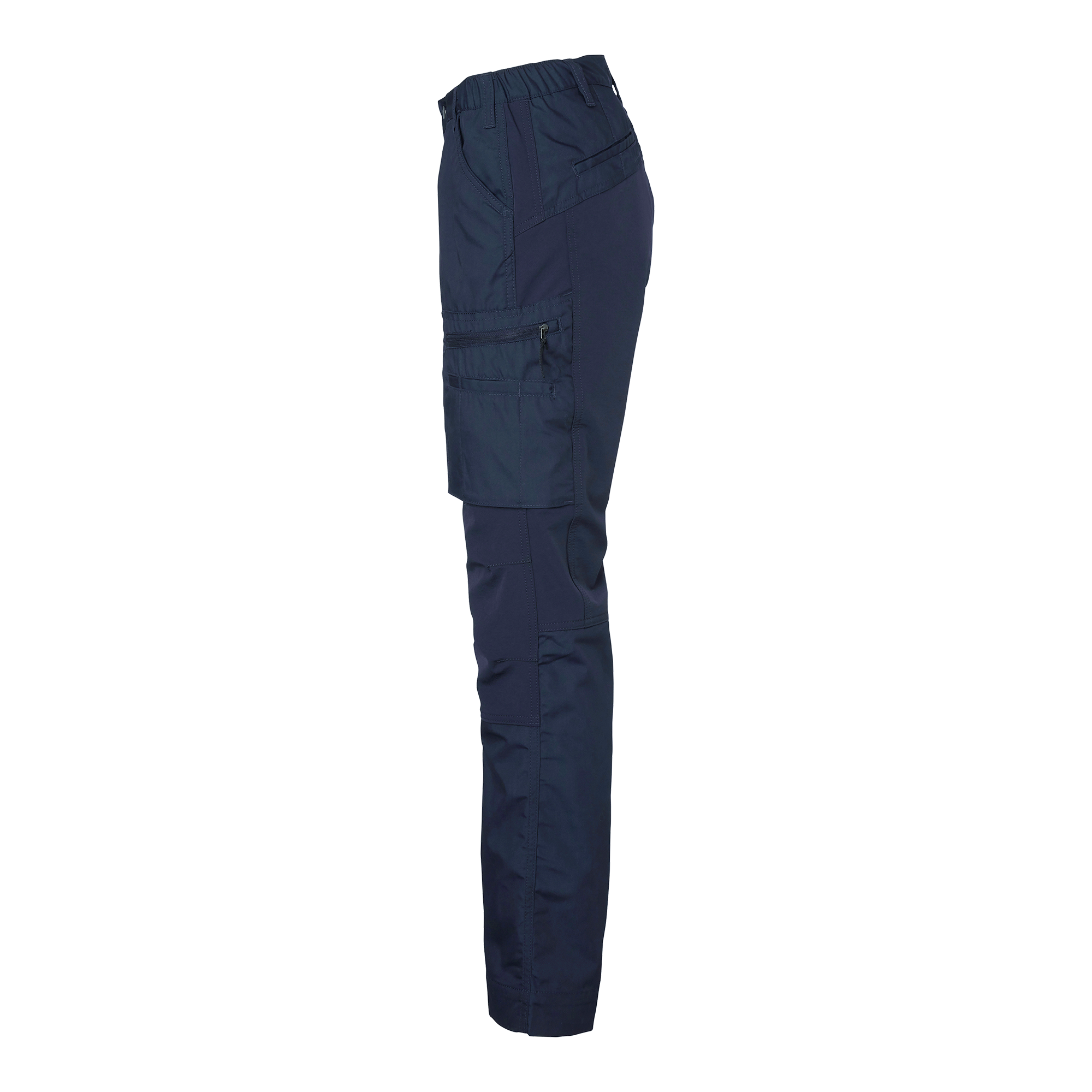 Servicebyxa med modern passform och stretch. Förböjda knän, två bakfickor, två framfickor, benfickor med dragkedja och plats för kniv och pennor. Benen kan förlängas 5 cm. Stretchpaneler för bästa rörelsefrihet.