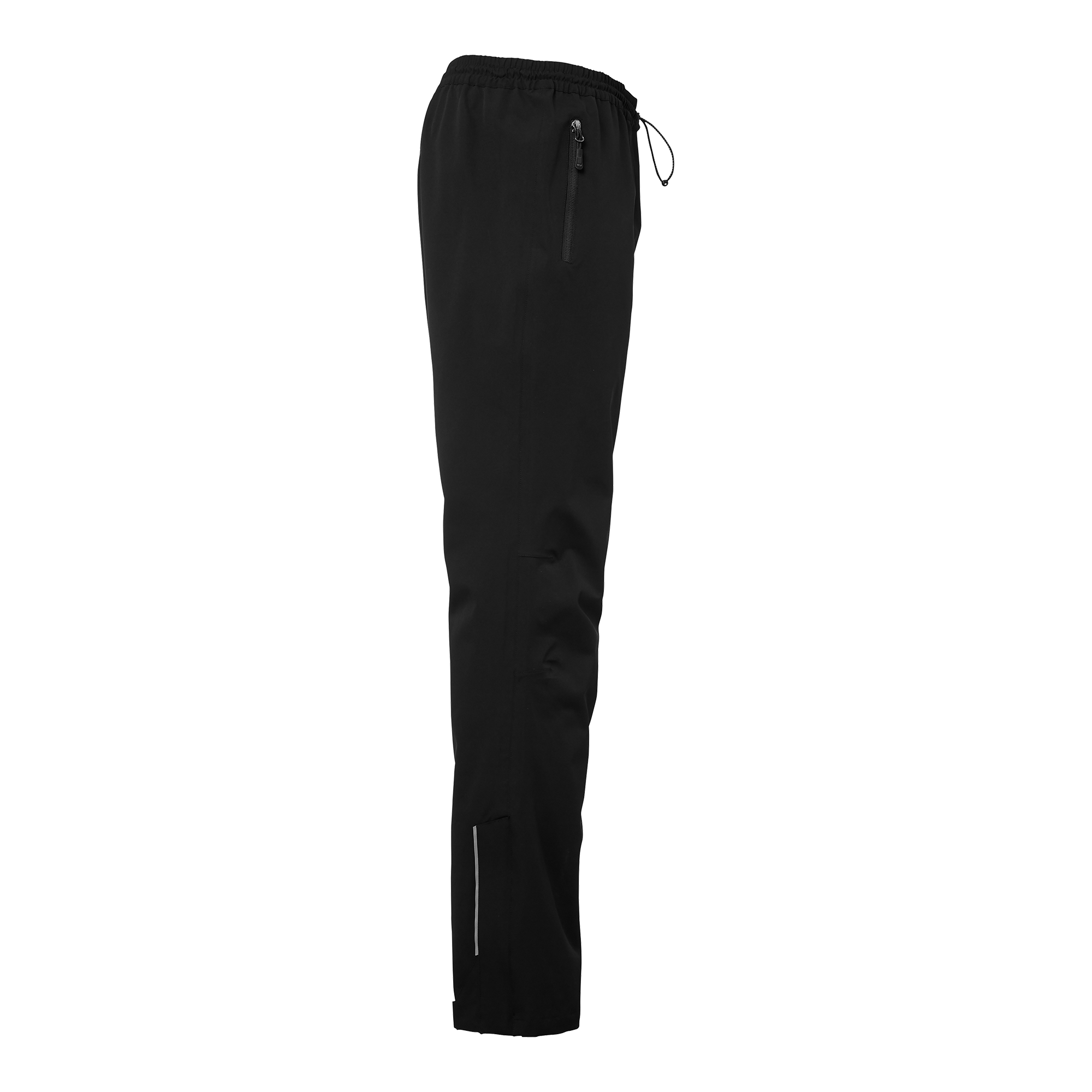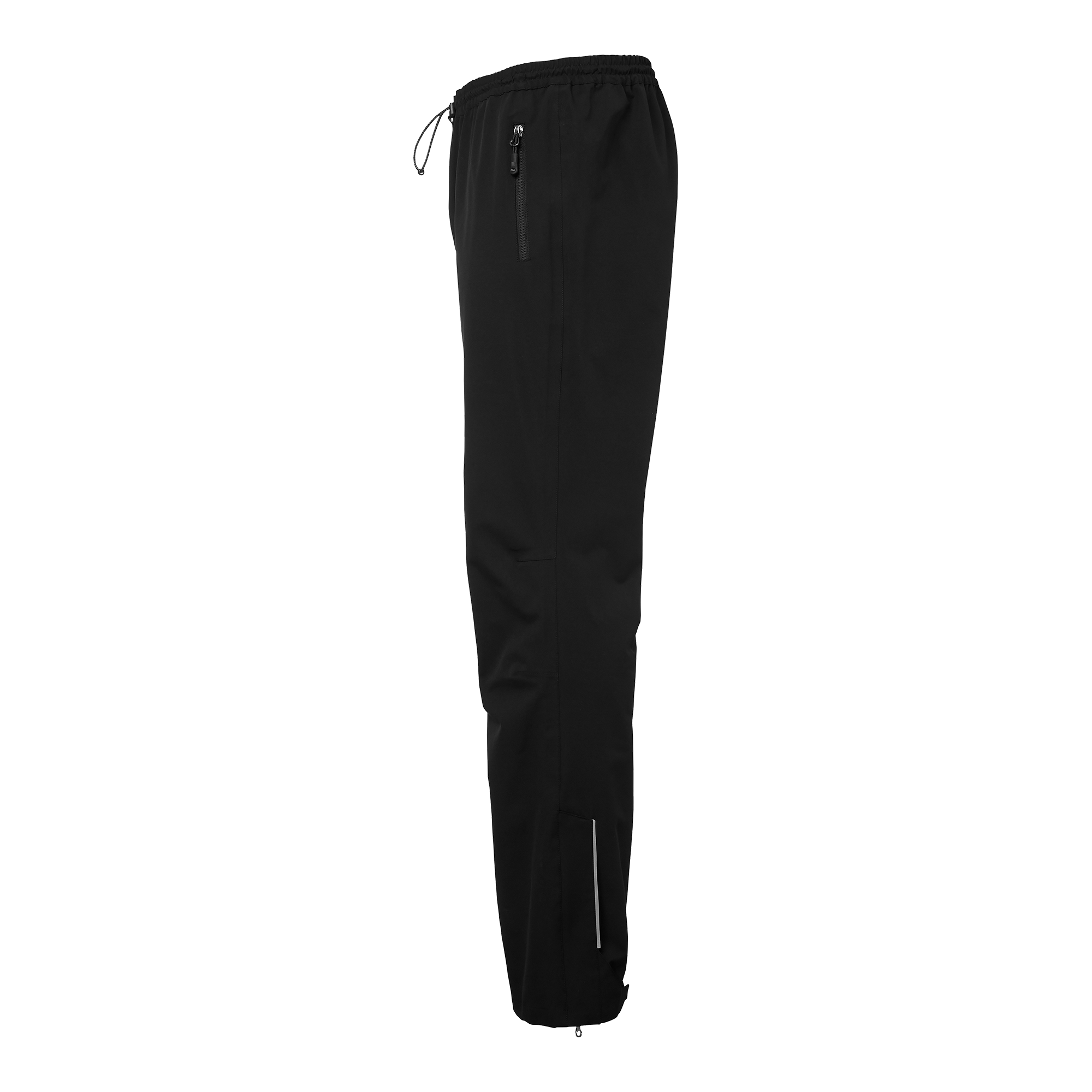 Vind- och vattenavvisande skalbyxa med tejpade sömmar och mekanisk stretch. Justerbar resår i midjan och dragkedja med reflexdetalj i benslut. Fodrad med polyester mesh upptill och slät polyester i benen. Två sidfickor med dragkedjor.