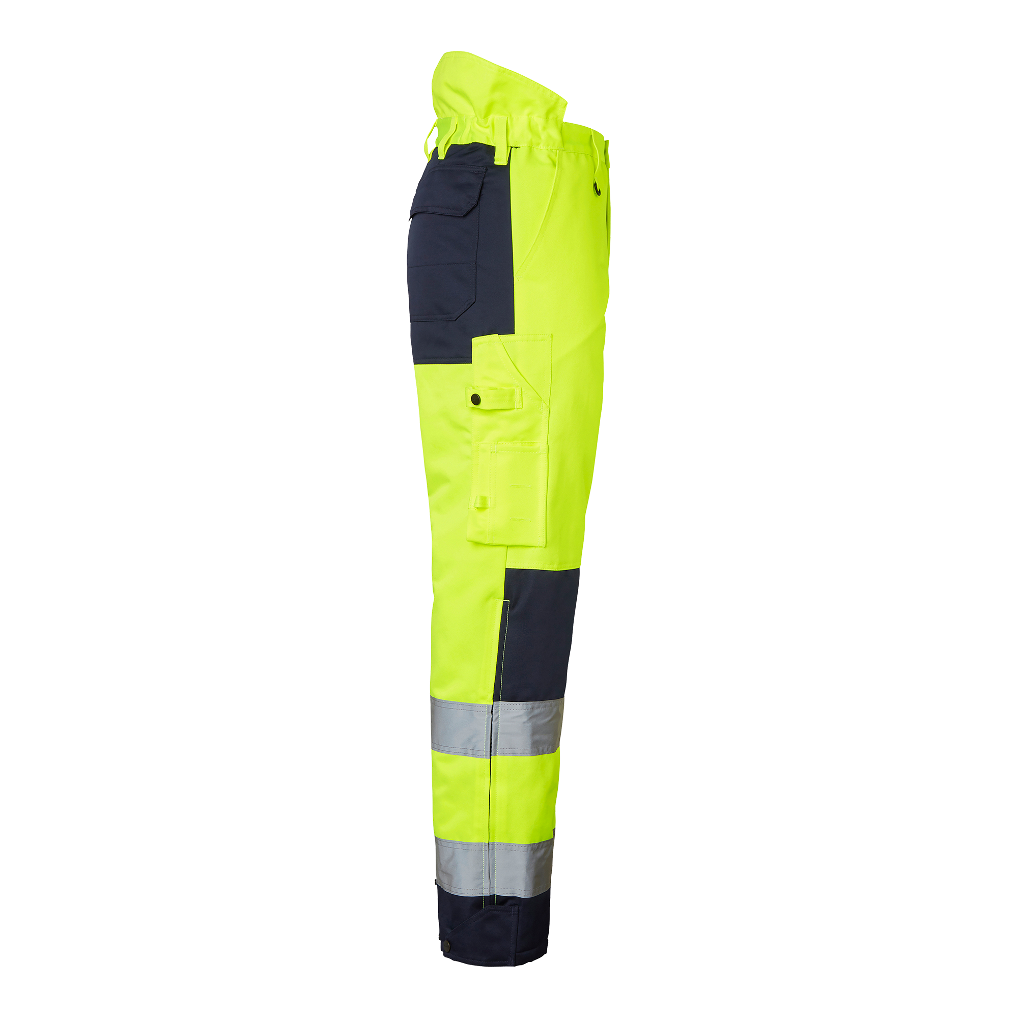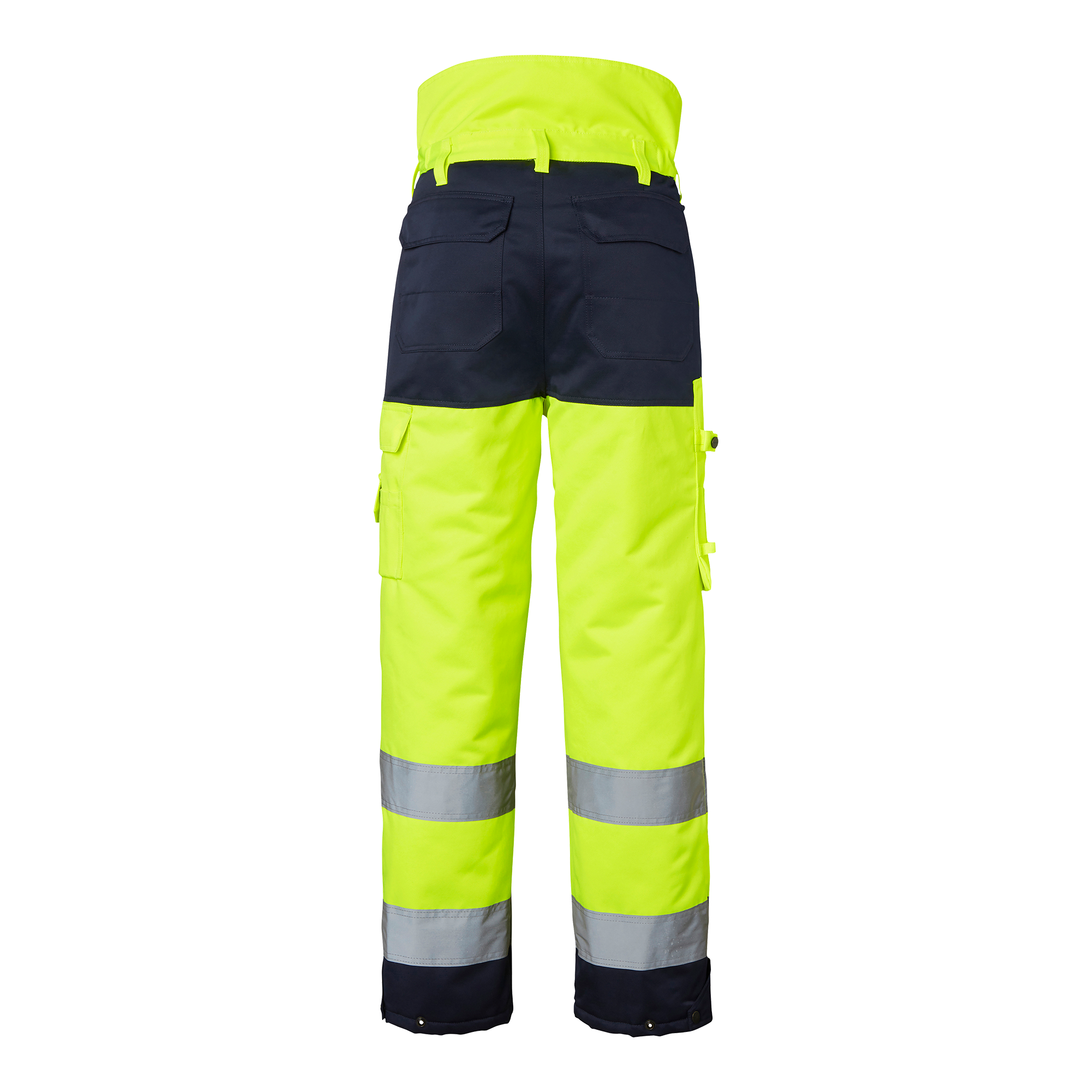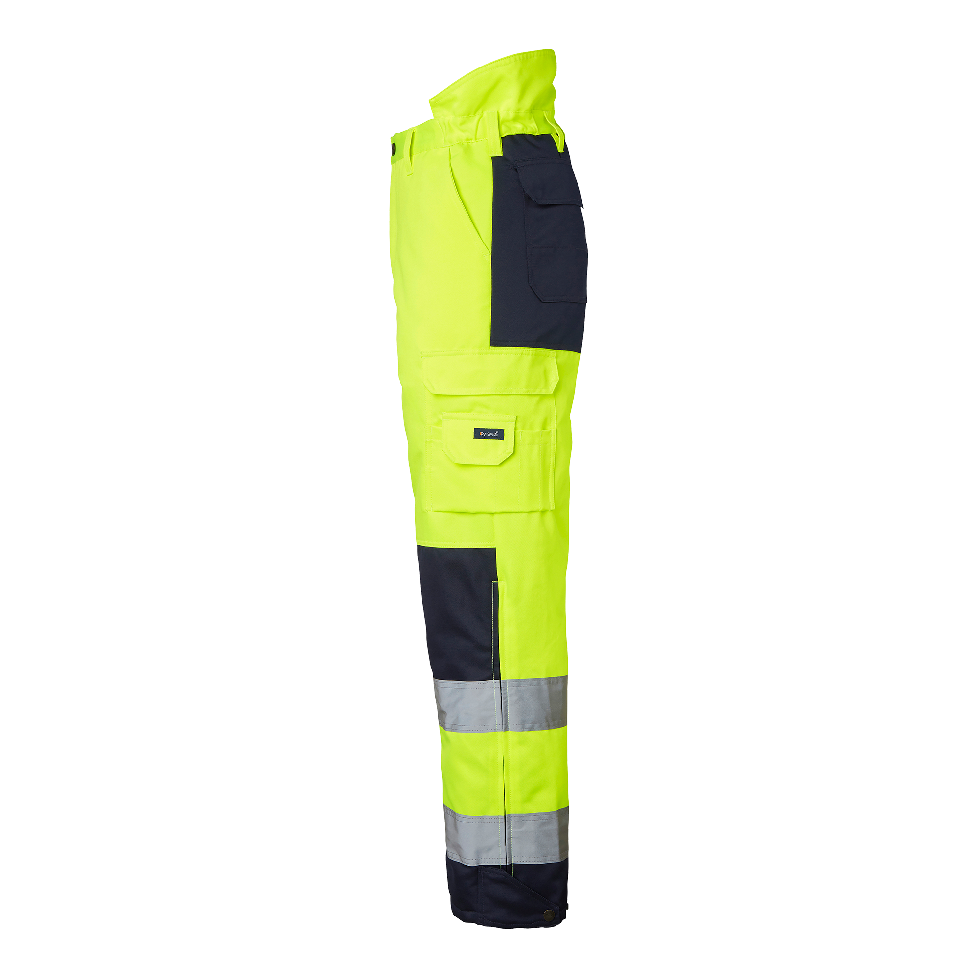 Quiltfodrad varselbyxa med två framfickor, två bakfickor med lock och tryckknappar, tumstocksficka, benficka med telefonficka och invändiga knäfickor. Resår och hällor i midjan, dragkedja i ben och reglerbar nederkant. Perfekt för kalla arbetsmiljöer.
