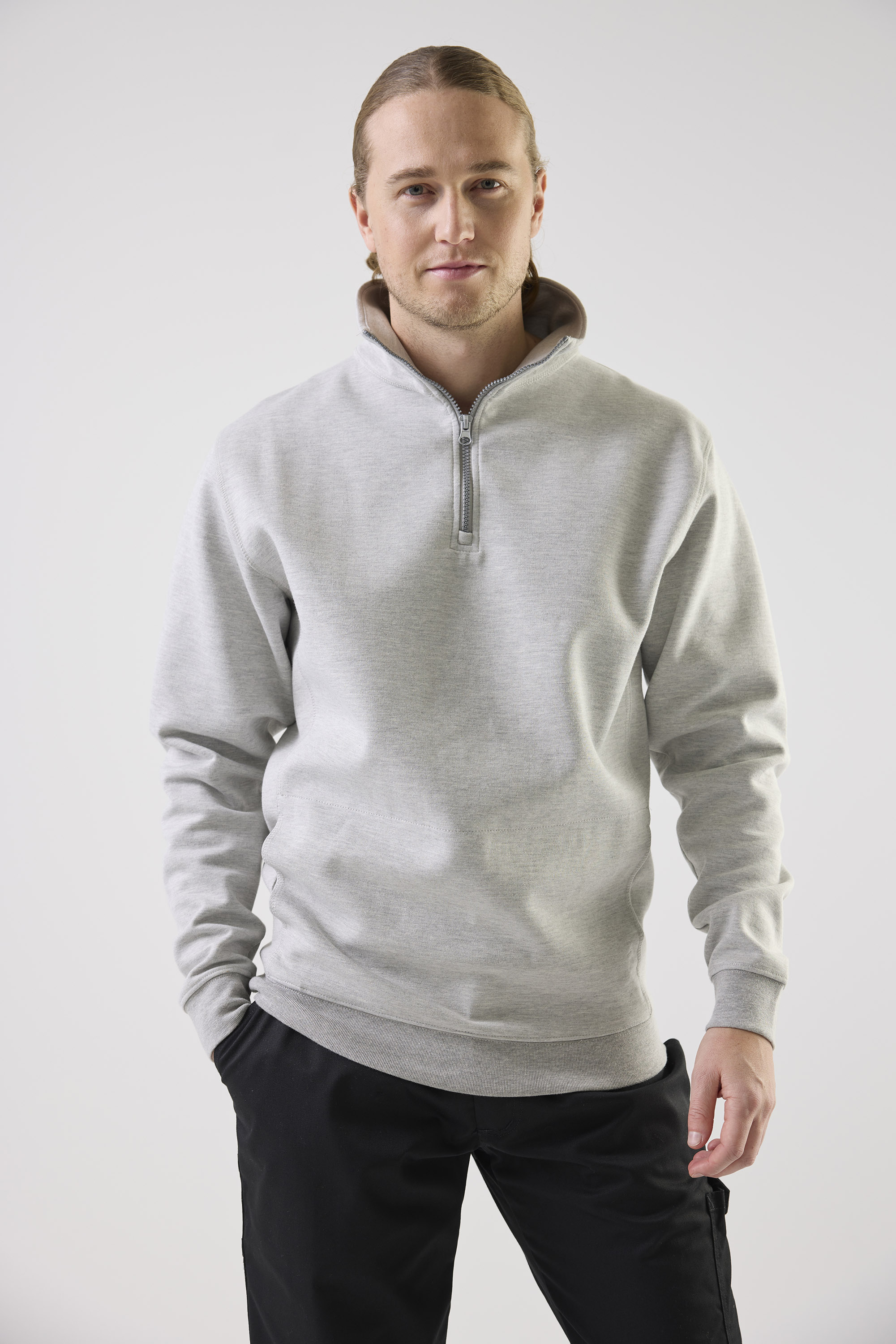 Sweatshirt med krage och kort dragkedja från Top Swede. Designad för både komfort och hållbarhet med ribbstickad mudd i nederkant och ärmslut. Perfekt för arbete i bygg och industri där funktion möter stil.