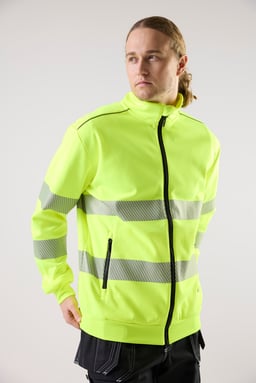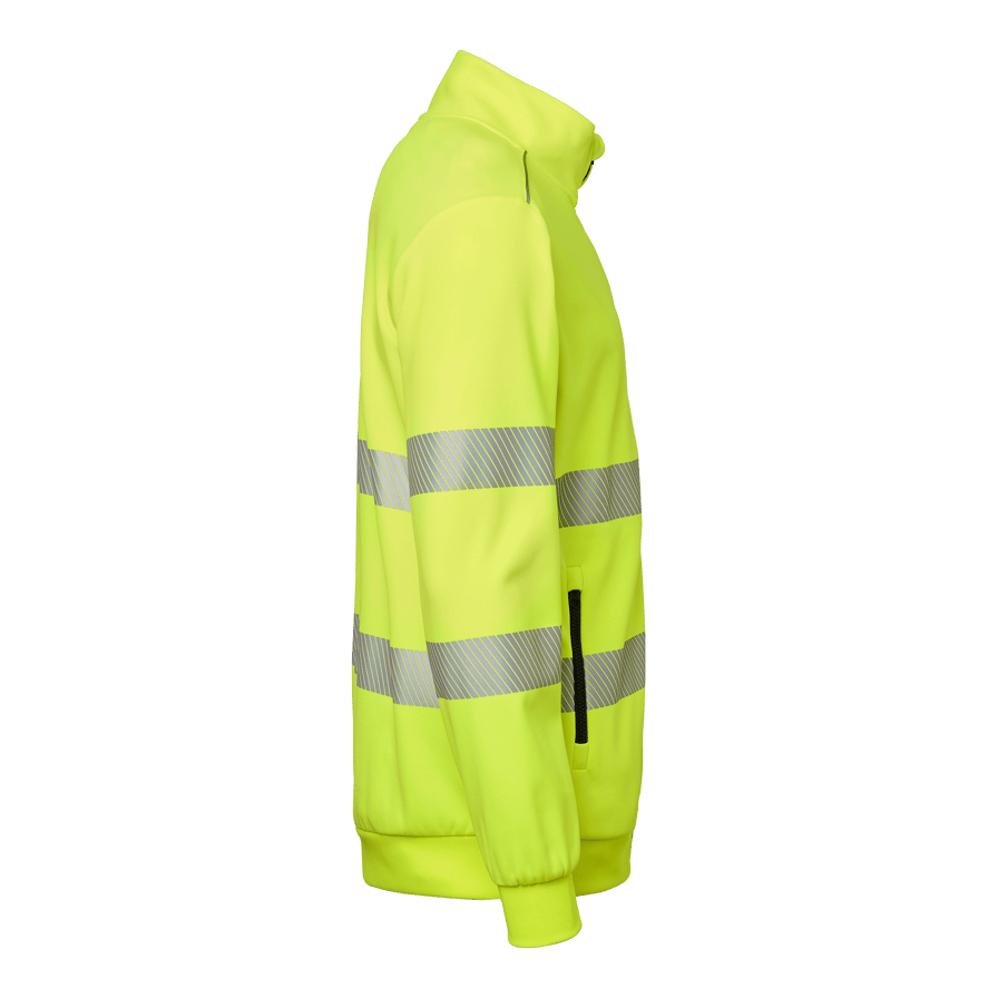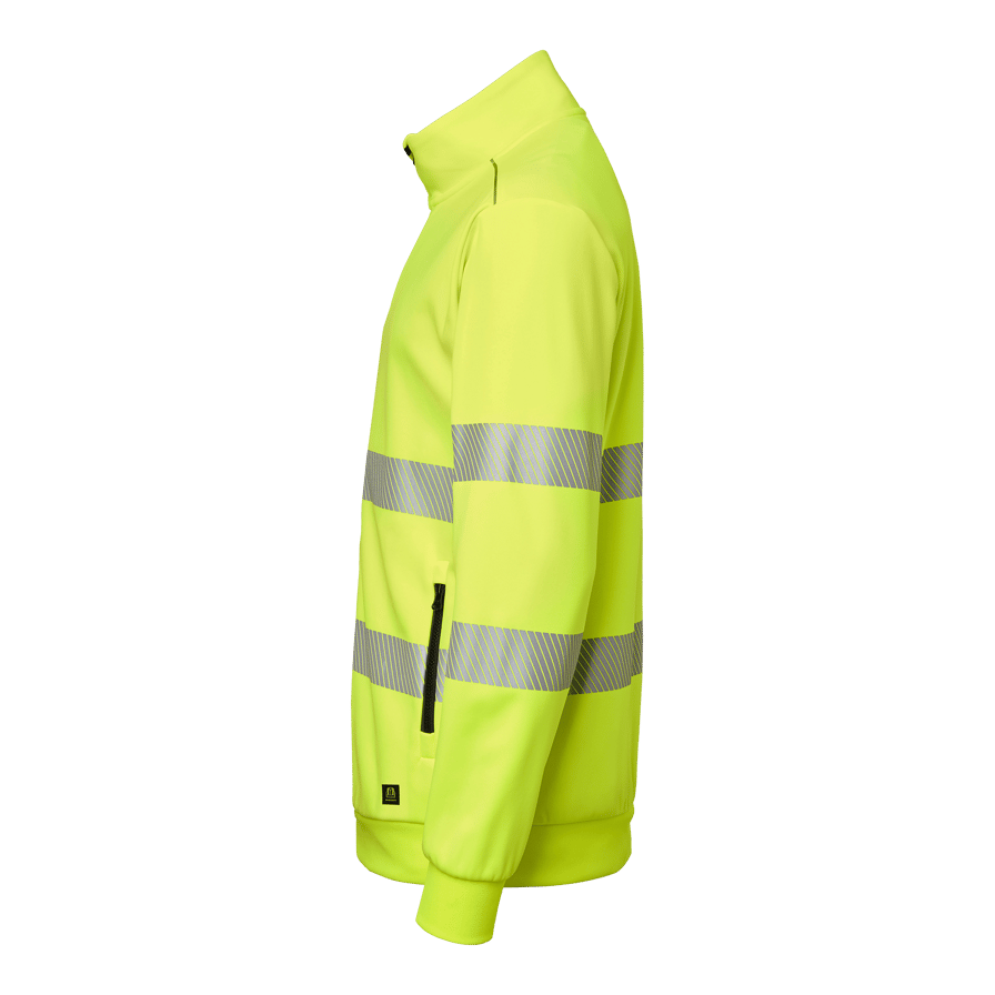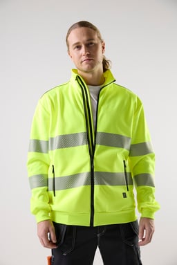Varsel-sweatshirt med hel dragkedja, segmenterad reflex samt mudd i nederkant och ärmslut. Tillverkad i återvunnen polyester för hållbarhet och komfort. Perfekt för krävande arbetsmiljöer.