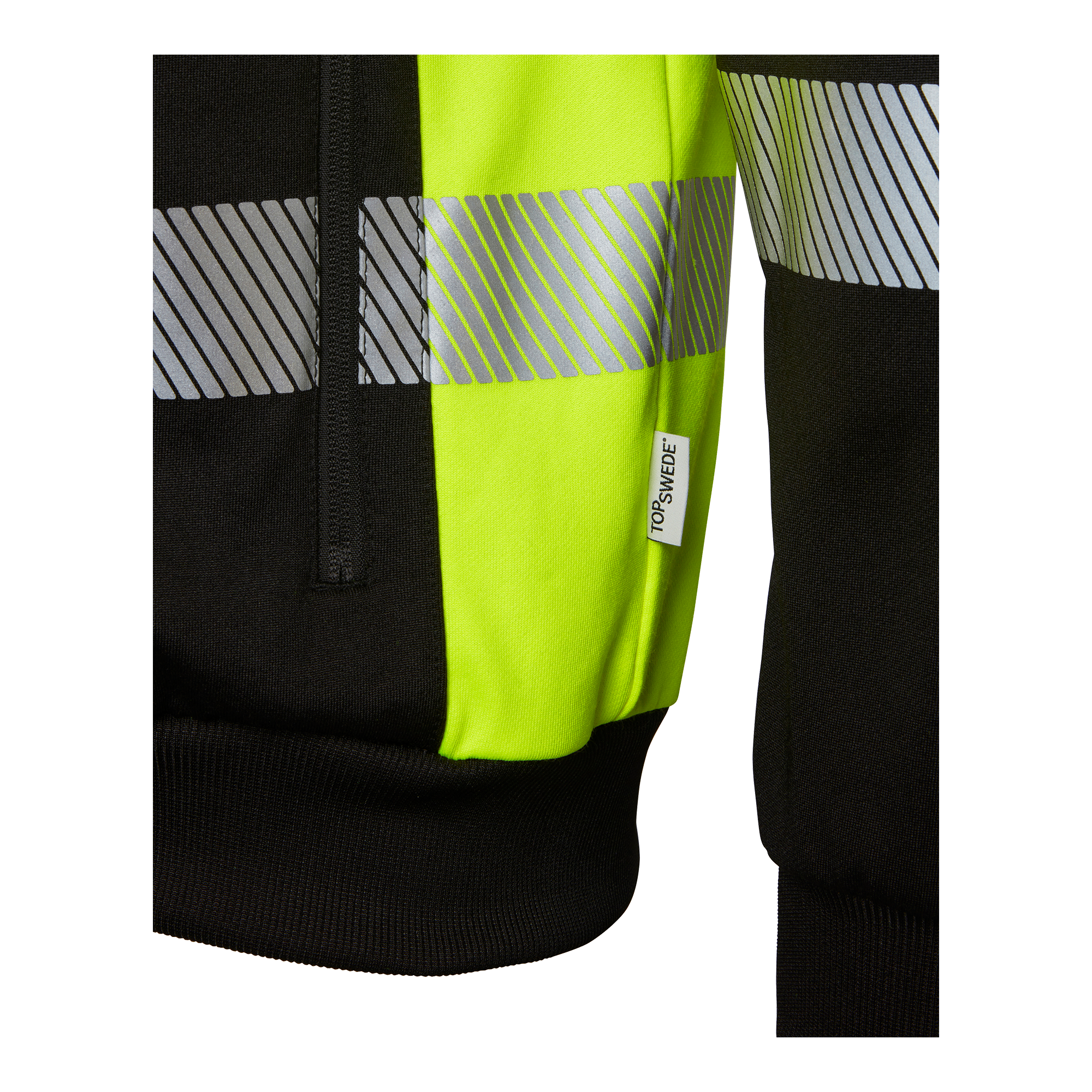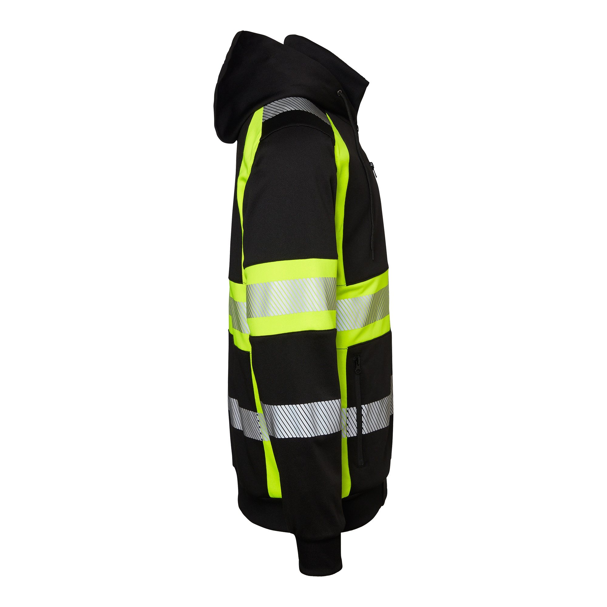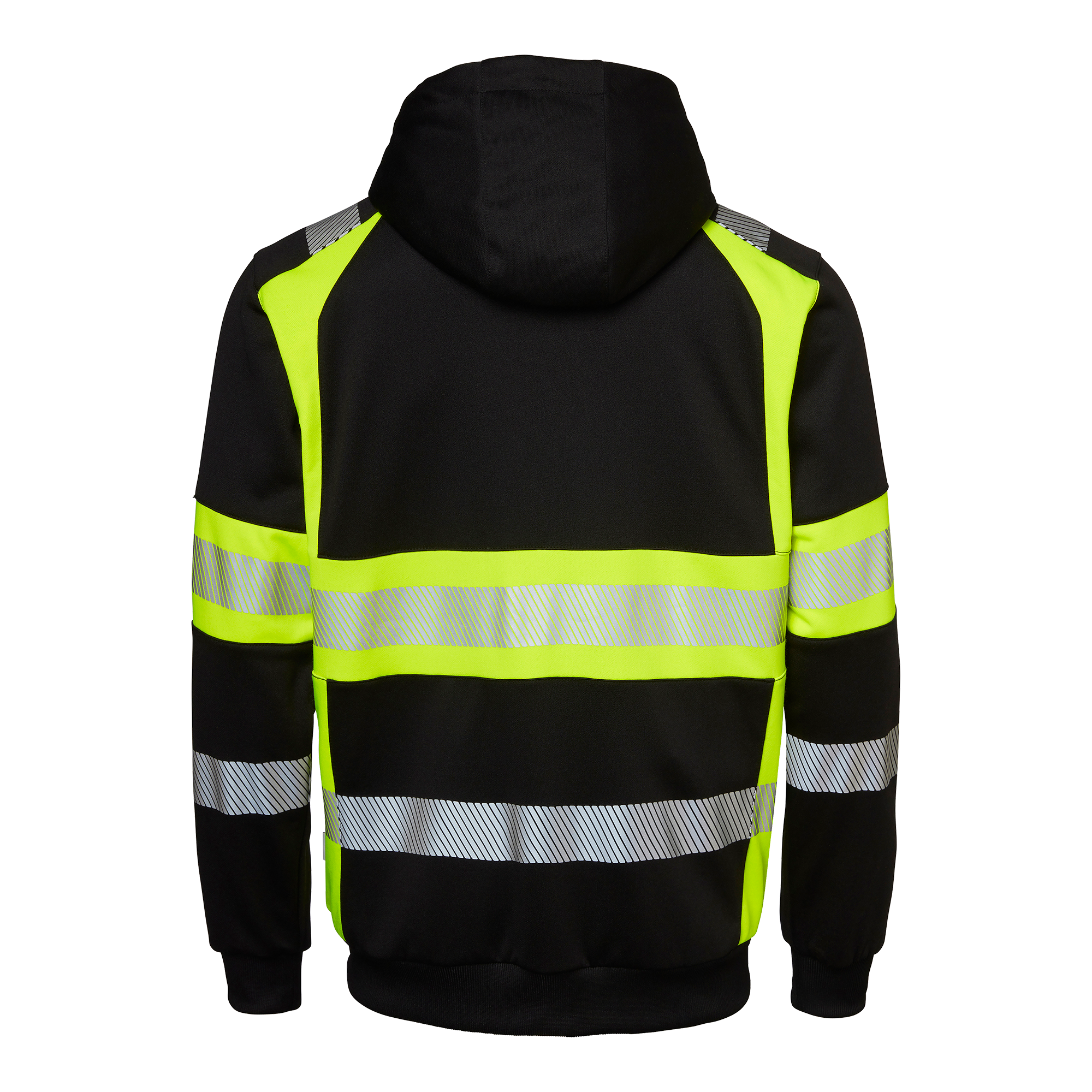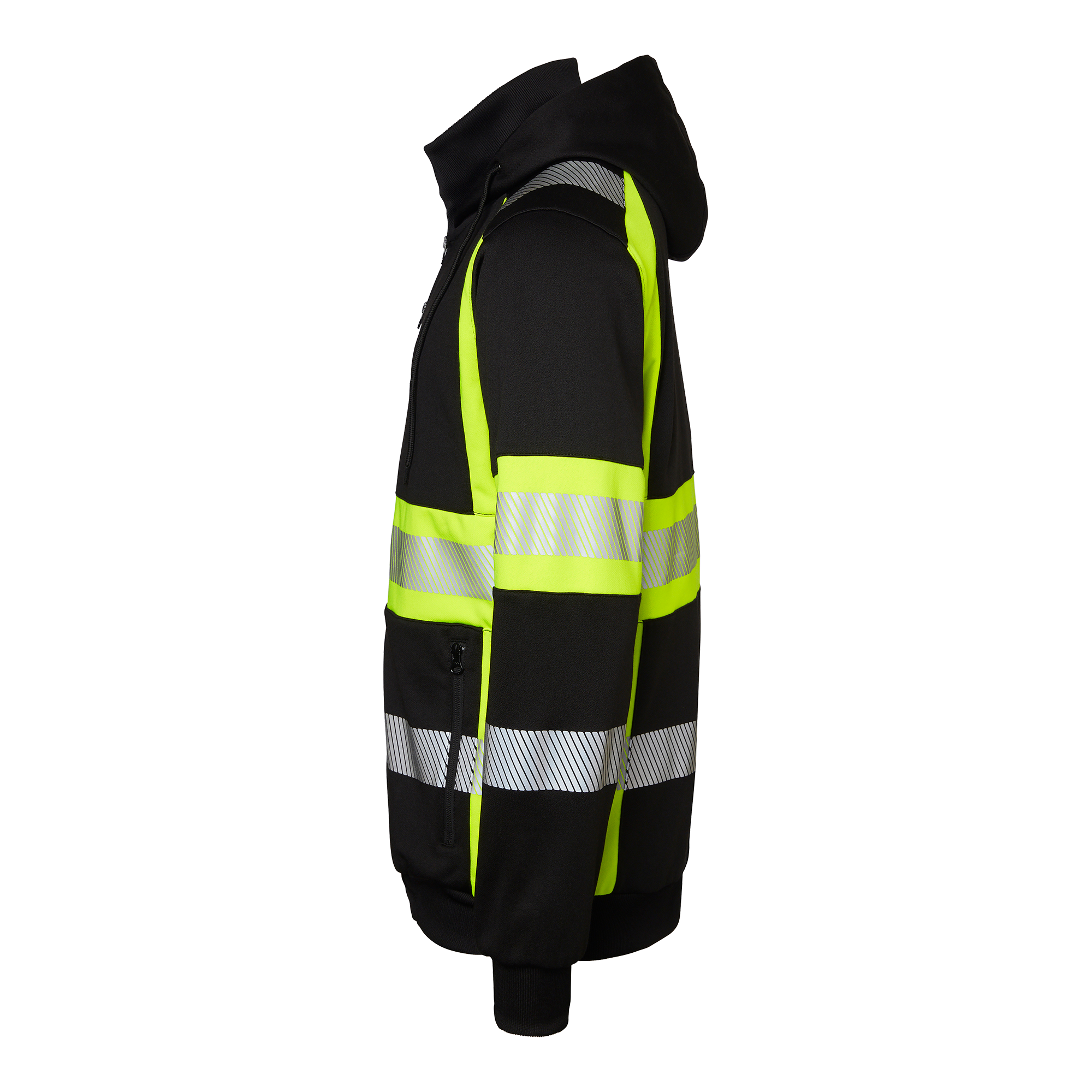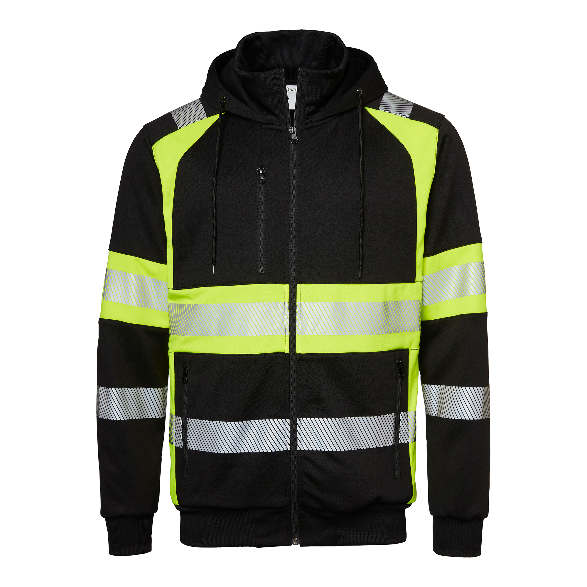 Varsel Sweatshirt i klass 1 med huva och hel dragkedja. Två framfickor och en bröstficka med dragkedja. Segmenterad reflex, mudd i nederkant och ärmslut. Perfekt för extra synlighet och komfort i arbetsmiljöer.