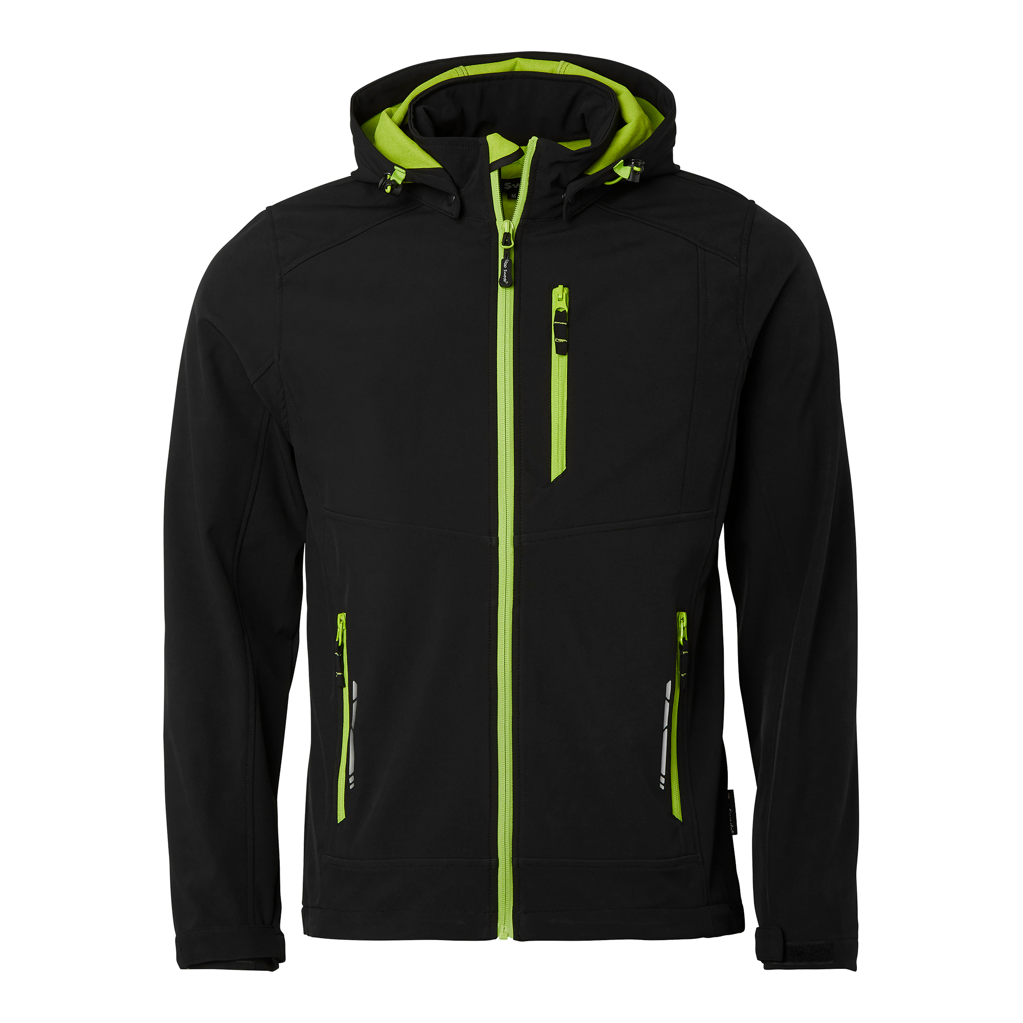 Softshelljacka i 3-lagers material med hel dragkedja och vindslå. Avtagbar och reglerbar huva, reflexdetaljer, bröstficka och två framfickor med dragkedja. Reglerbart ärmslut och dragsko i nederkant. Perfekt för krävande arbetsmiljöer.
