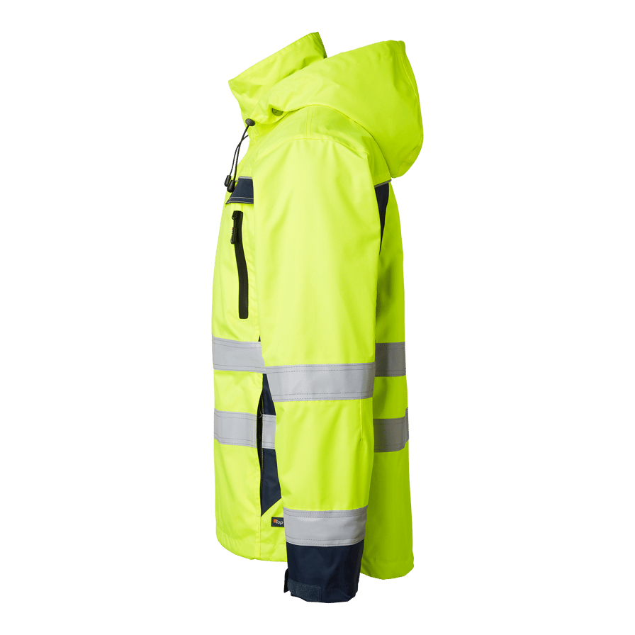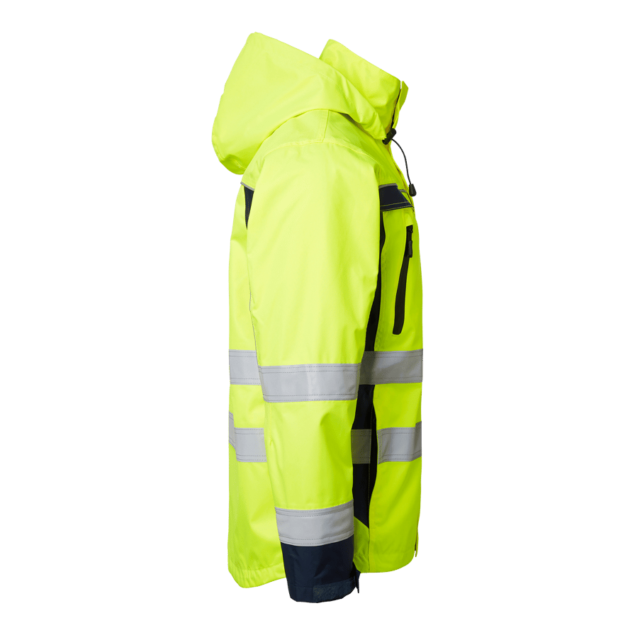 Skaljacka som är vind- och vattentät med god andningsförmåga. Två bröstfickor, två framfickor, två innerfickor med telefonficka, löstagbar huva och reglerbart ärmslut. Perfekt för arbete i alla väder.
