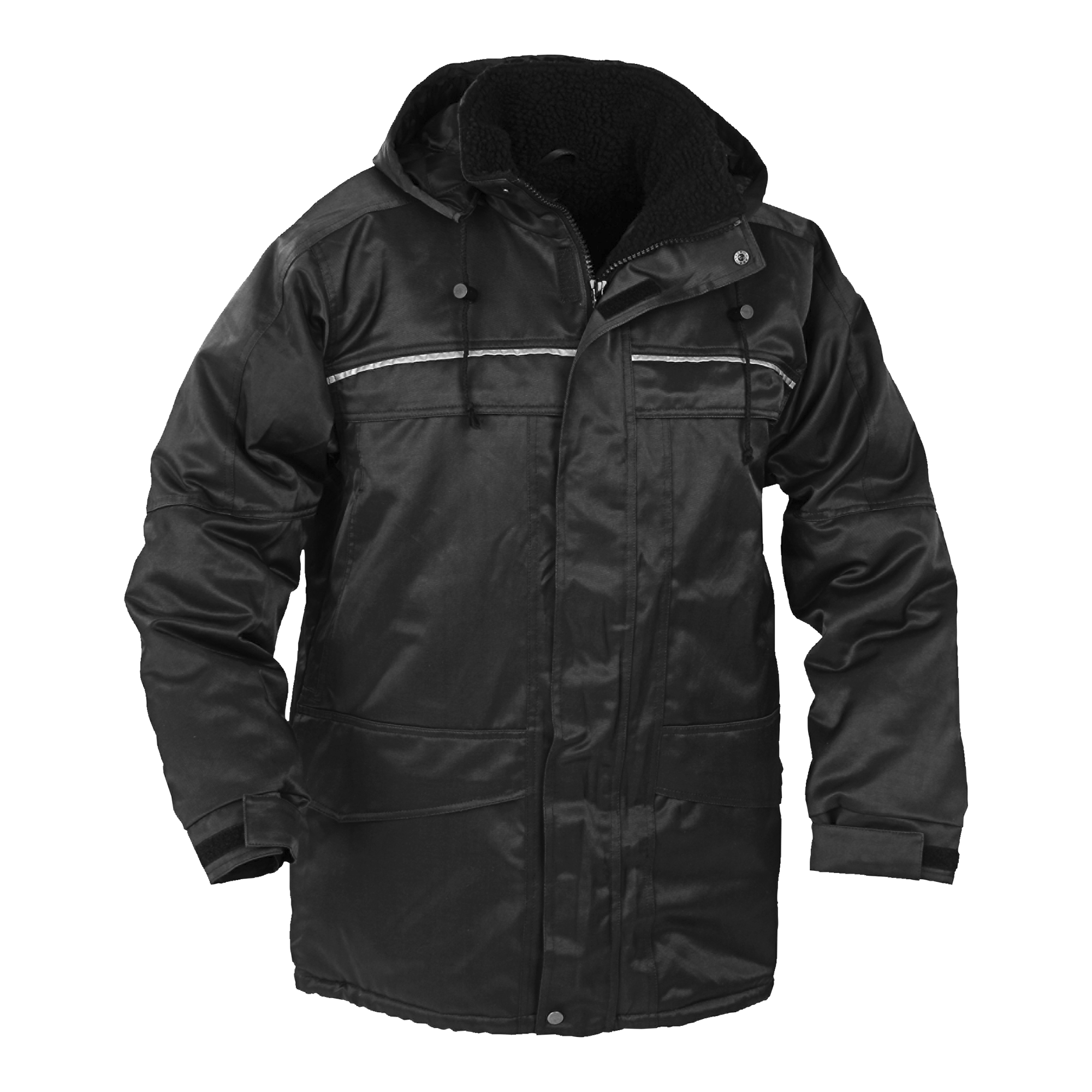 Parkas fodrad med pilé i kroppen och quiltfodrade ärmar. Utrustad med två framfickor, två bröstfickor, ficka under vindslån och två innerfickor. Löstagbar fodrad huva. Perfekt för kalla arbetsmiljöer.