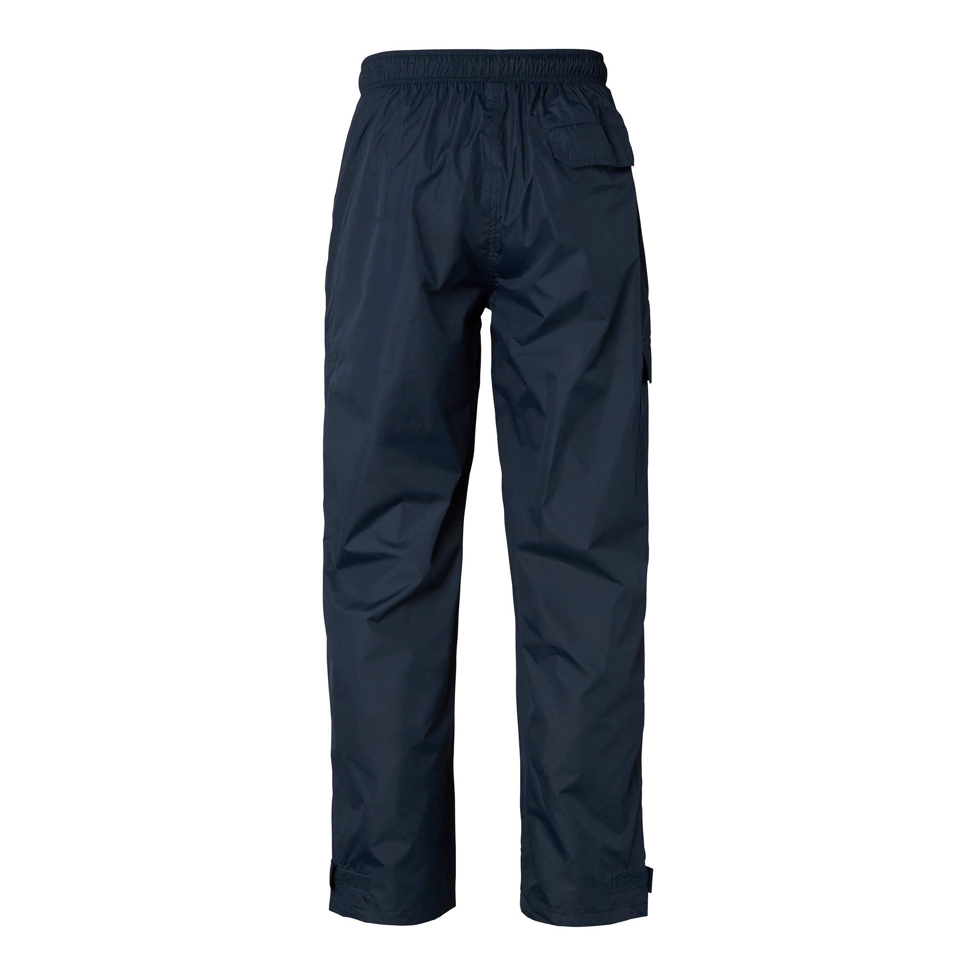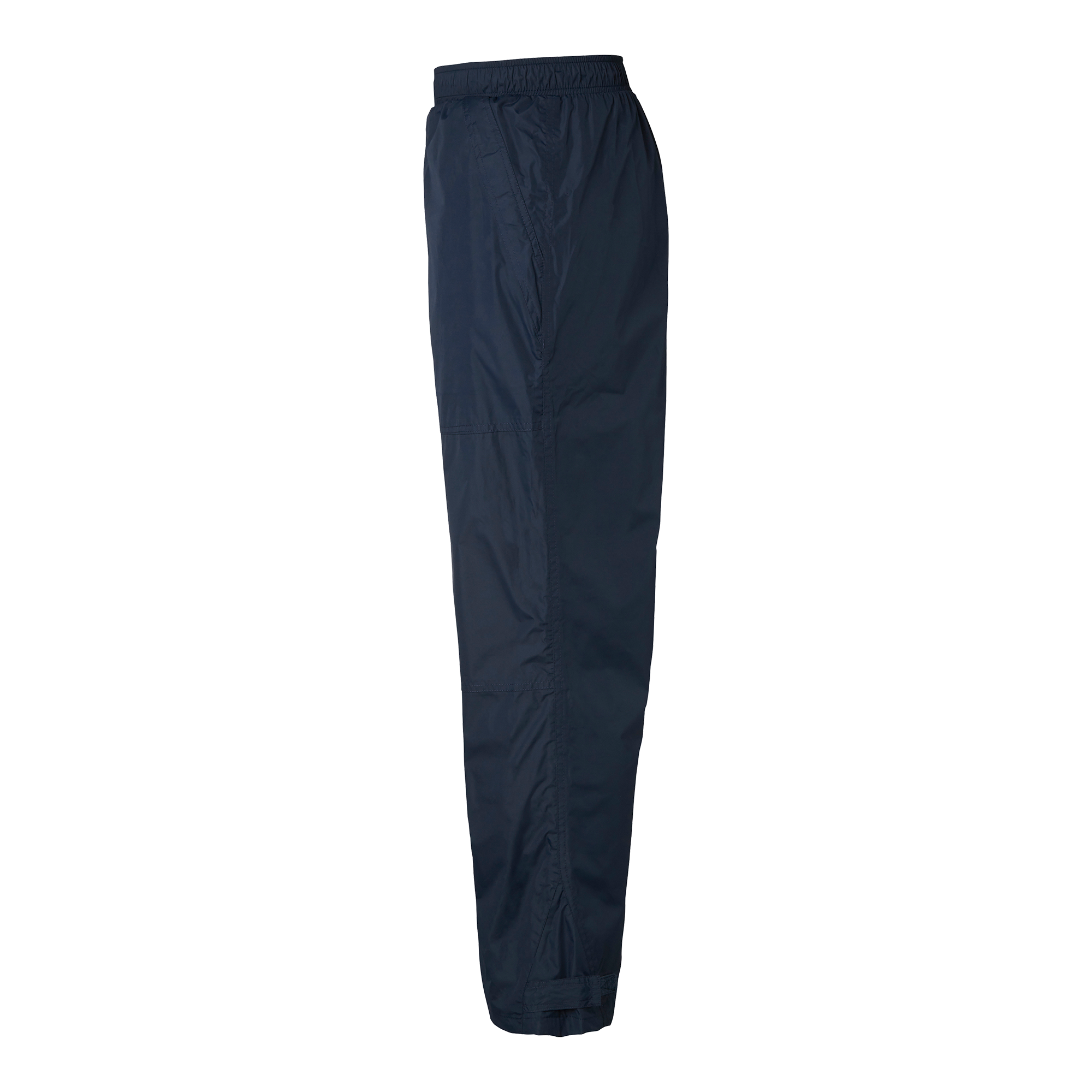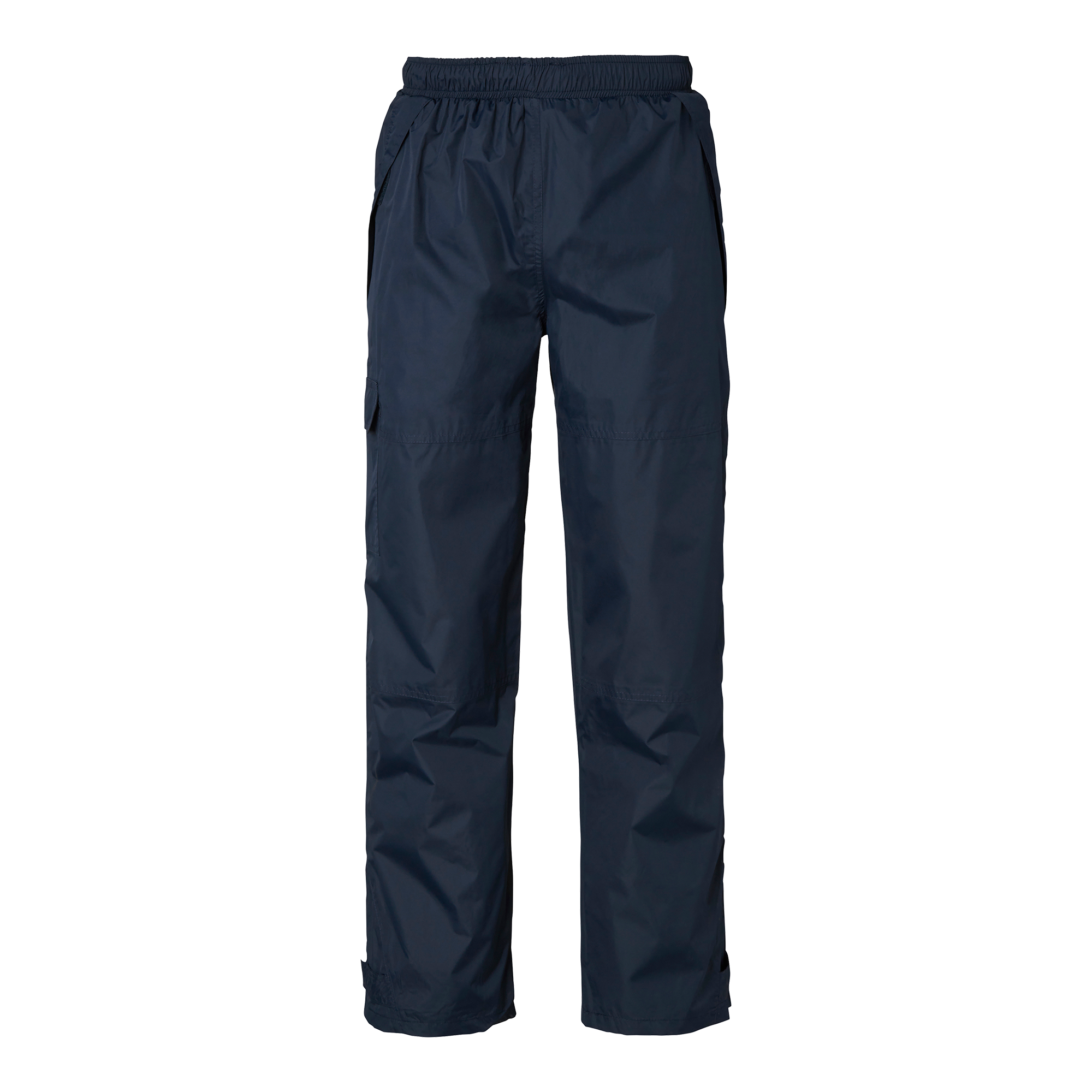 Komplett regnställ med tejpade sömmar. Jacka med dold huva, justerbara ärmslut och nederkant. Två framfickor och en innerficka med dragkedja. Byxor med fickor och kardborreknäppning samt reglerbara benslut.