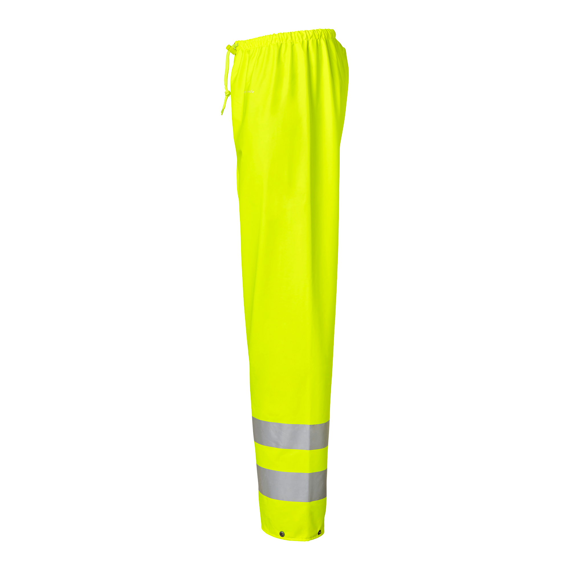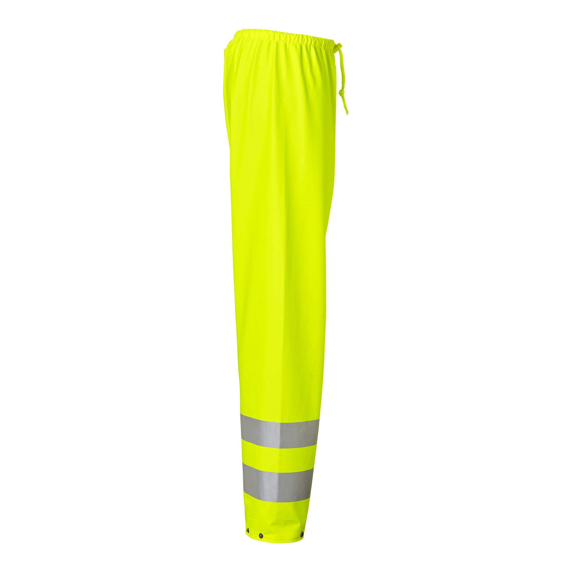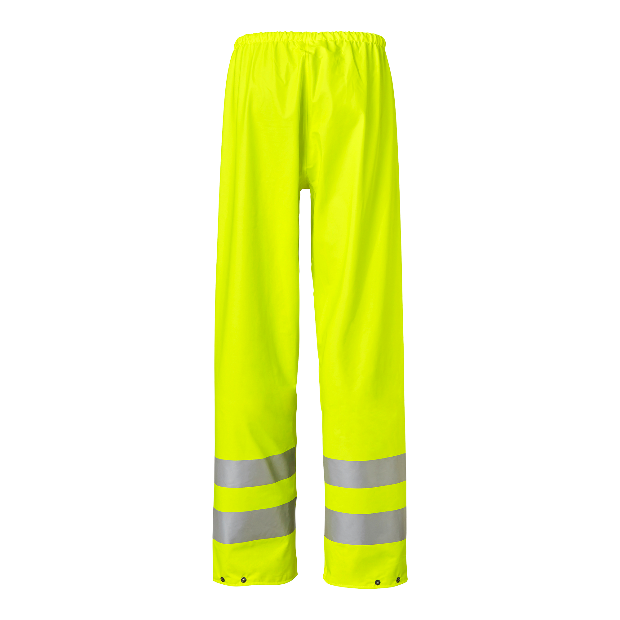 Varselregnbyxa med resår och justerbar snodd i midjan samt justerbara benslut. Svetsade sömmar för optimal vattentäthet och hög synlighet. Perfekt för arbete i regniga förhållanden.