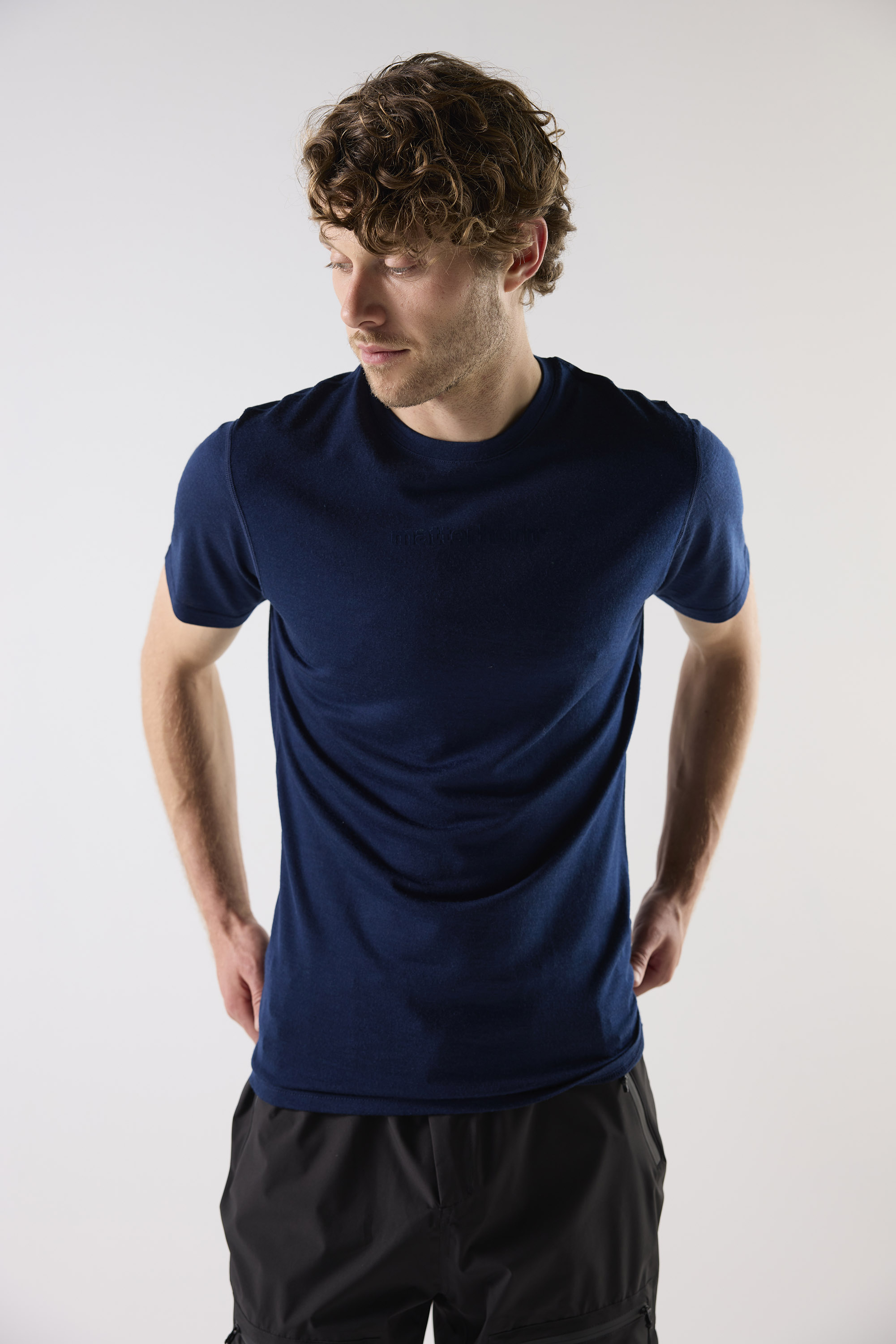Mallory T-shirt är en lätt och funktionell kortärmad tröja i mjuk merinoull, utformad för att ge naturlig komfort under aktiva dagar i vår- och höstväder. Med en vikt på 160 gram erbjuder merinoullen en behaglig balans mellan värme och andningsförmåga, och passar utmärkt som ett tunnare lager vid vandring, friluftsliv eller vardagsrörelse. Materialet är temperaturreglerande, fukttransporterande och naturligt antibakteriellt – egenskaper som ger en torr och fräsch känsla även vid hög aktivitet. Passformen är kroppsnära utan att strama, och tröjan finns i färgerna mörkblå och svart – båda med en diskret flocktryckt Matterhorn-logo på bröstet. Matchas med Hojac Baselayer Pant för komplett underställ.