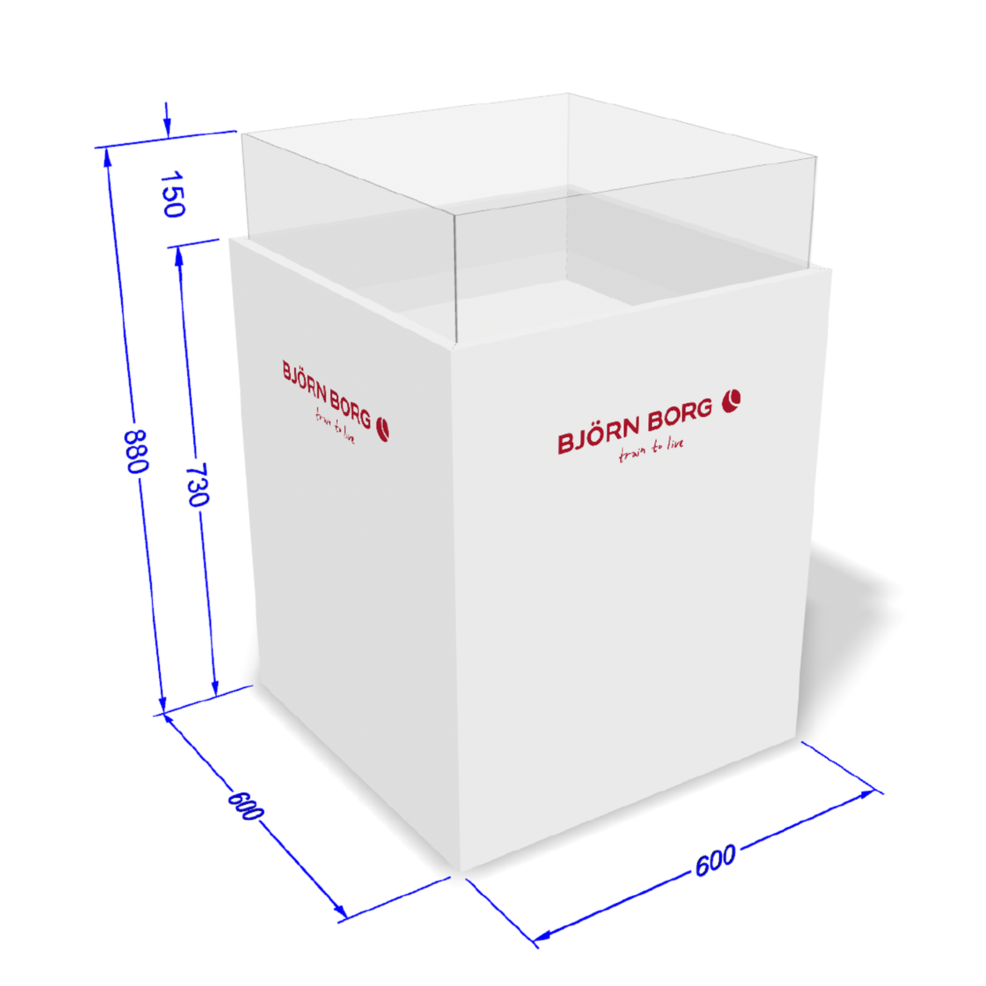 Displaymaterial för strumpor från Björn Borg, ett snyggt sätt att presentera i butik.W 60 x D 60 x H 88 cmUtan kostnad vid köp av 80 par strumpor, kontakta din säljare för mer information.