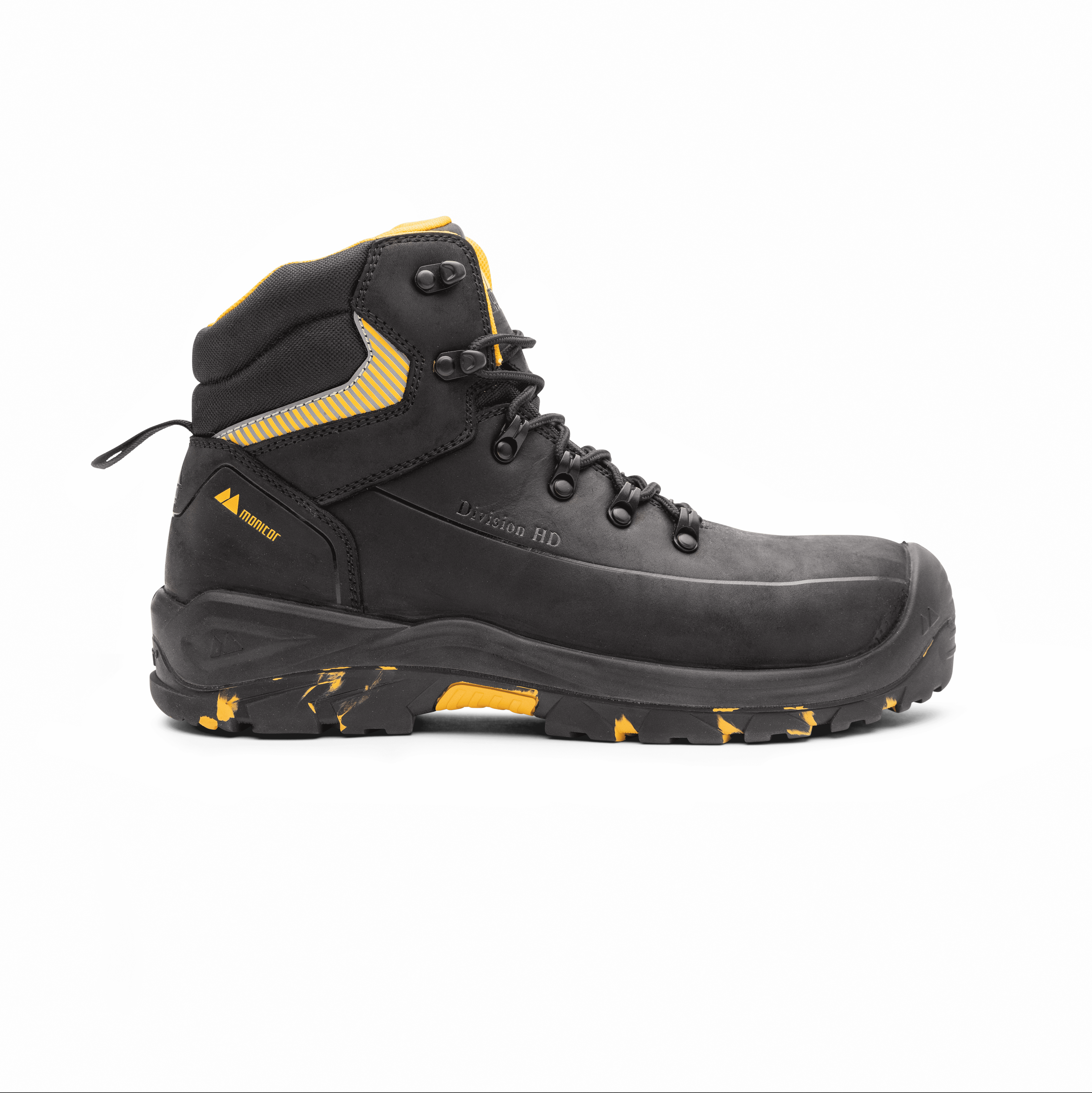 Upptäck Monitor Division Safety Boot, en kraftfull halvkänga i Monitor Stealth-serien som kombinerar hög säkerhet med exceptionell hållbarhet och komfort för yrkesverksamma inom bygg och industri. Denna skyddskänga är designad för att klara de tuffaste förhållandena och erbjuda maximalt skydd och bekvämlighet under hela arbetsdagen. Ovandelen är tillverkad i fettat fullnarvsläder, vilket ger överlägsen slitstyrka och hållbarhet, medan det kraftiga polyuretanskyddet vid tån ger extra skydd mot slitage. Monitor Division Safety Boot är utrustad med Monitors Heavy Duty HRO-yttersula, tillverkad av slitstarkt gummi och med en mjukare polyuretansammansättning i mellansulan, vilket ger utmärkt grepp och dämpning på olika underlag. Denna kombination gör kängan lättare än de flesta andra HD-kängor på marknaden. Pantzar APT spikskydd och en bred komposittåhätta erbjuder maximalt skydd mot stötar och genomträngning utan att kompromissa med flexibiliteten. Innersulan, Monitors klassiska SS2.0-sula, tillverkad i 3-densitets PU, erbjuder fantastisk komfort och stöd. Innerfodret i Dri-lex textil är fuktabsorberande och snabbtorkande, vilket håller dina fötter torra och bekväma. Monitor Division Safety Boot är idealisk för både män och kvinnor som söker en pålitlig och robust halvkänga till ett konkurrenskraftigt pris. Välj Monitor Division Safety Boot för att uppleva en kombination av hög säkerhet, enastående komfort och hållbarhet under hela din arbetsdag.