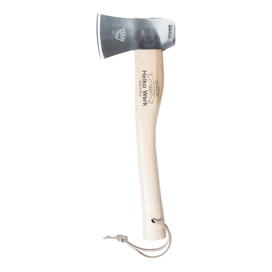 Outdoor Hatchet är en mindre och lättare yxa och ett grundläggande lägerverktyg. Det lätta 500g-huvudet är slipat och poleratför en mycket reflekterande ytavilket minskar friktionen vidklyvning och förbättrar rostmotståndet. Helko Crown är präglat i huvudet. Det nästan raka 35 cm-handtaget är tillverkat av fin schweizisk ask och behandlat med en lätt lacksom skyddar träet. Ett skydd av läder med bältesöglor medföljer. Specifikation: Skaft: 35 cm