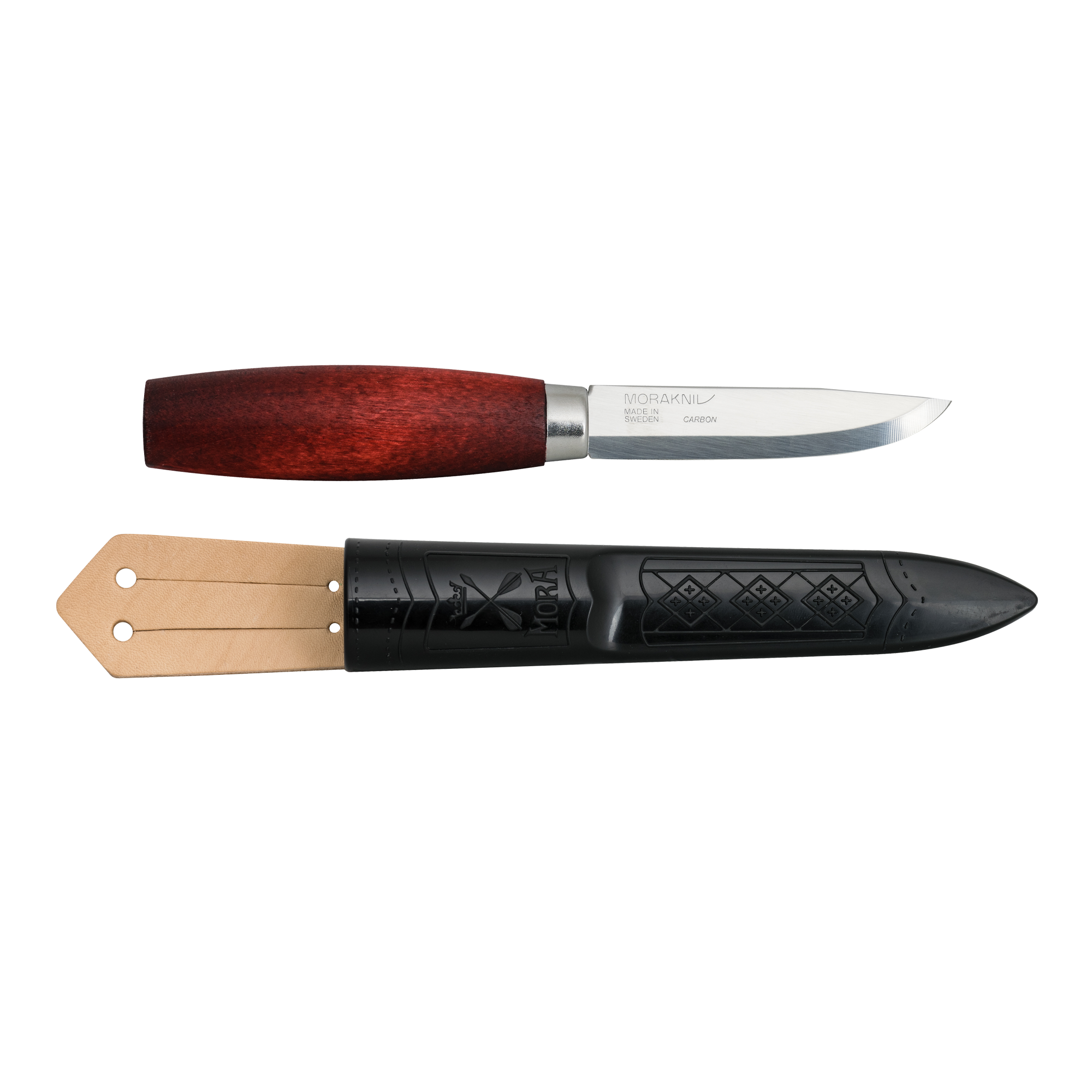 Morakniv Classic Nr 1/0 är en mångsidig kniv med 77 mm blad i kolstål och karakteristiskt rödbetsat björkskaft. Levereras med slida i polymer. Bladtjocklek 2 mm, totallängd 204 mm, vikt 55,2 g. En hyllning till svensk hantverkstradition.